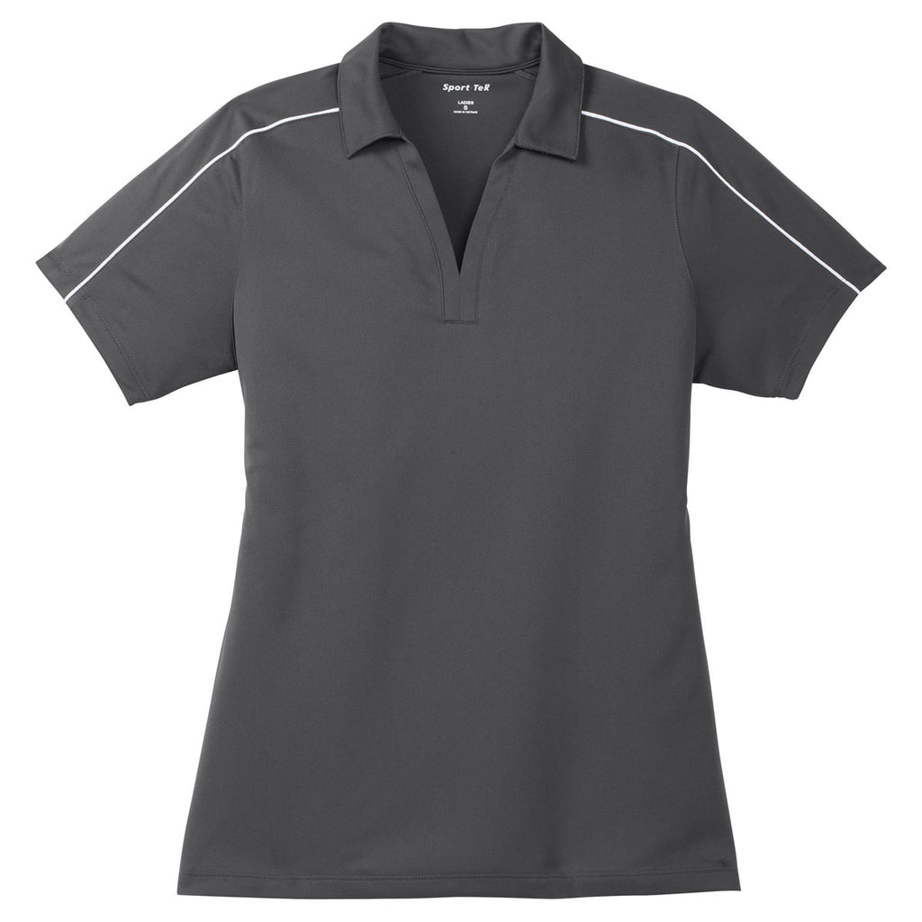 Sport-Tek Women's Iron Grey/White Micropique Sport-Wick Piped Polo