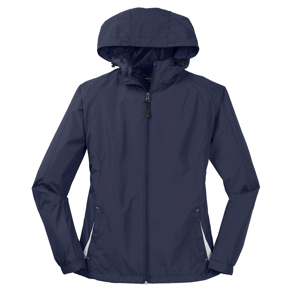 When the weather gets tough, so must you. That's the idea behind this Sport-Tek Women's True Navy/White Colorblock Hooded Raglan Jacket. Add your own custom embroidery to make this a piece of corporate apparel that anyone can enjoy. Layering is ideally suited to serve as your canvas, and this is an item that will work for you in the elements, not against.