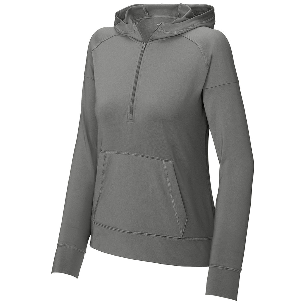 Sport-Tek Women's Charcoal Grey Sport-Wick Stretch 1/2-Zip Hoodie with a corporate logo is a fun and creative way to create a uniform that is sleek, professional, and comfortable. The simple hoodie would look great on the salesforce of a dealership or organization. This hoodie features moisture-wicking to keep everyone looking and feeling their best. Place an order today.
