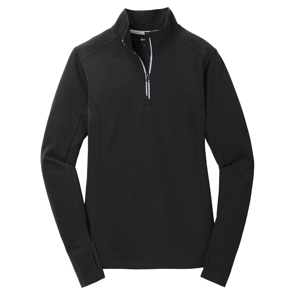 When the weather gets tough, so must you. That's the idea behind this Sport-Tek Women's Black Sport-Wick Textured 1/4-Zip Pullover. Add your own custom embroidery to make this a piece of corporate apparel that anyone can enjoy. Layering is ideally suited to serve as your canvas, and this is an item that will work for you in the elements, not against.Corresponding Men's Style:Sport-Tek Men's Black Textured 1/4-Zip Pullover