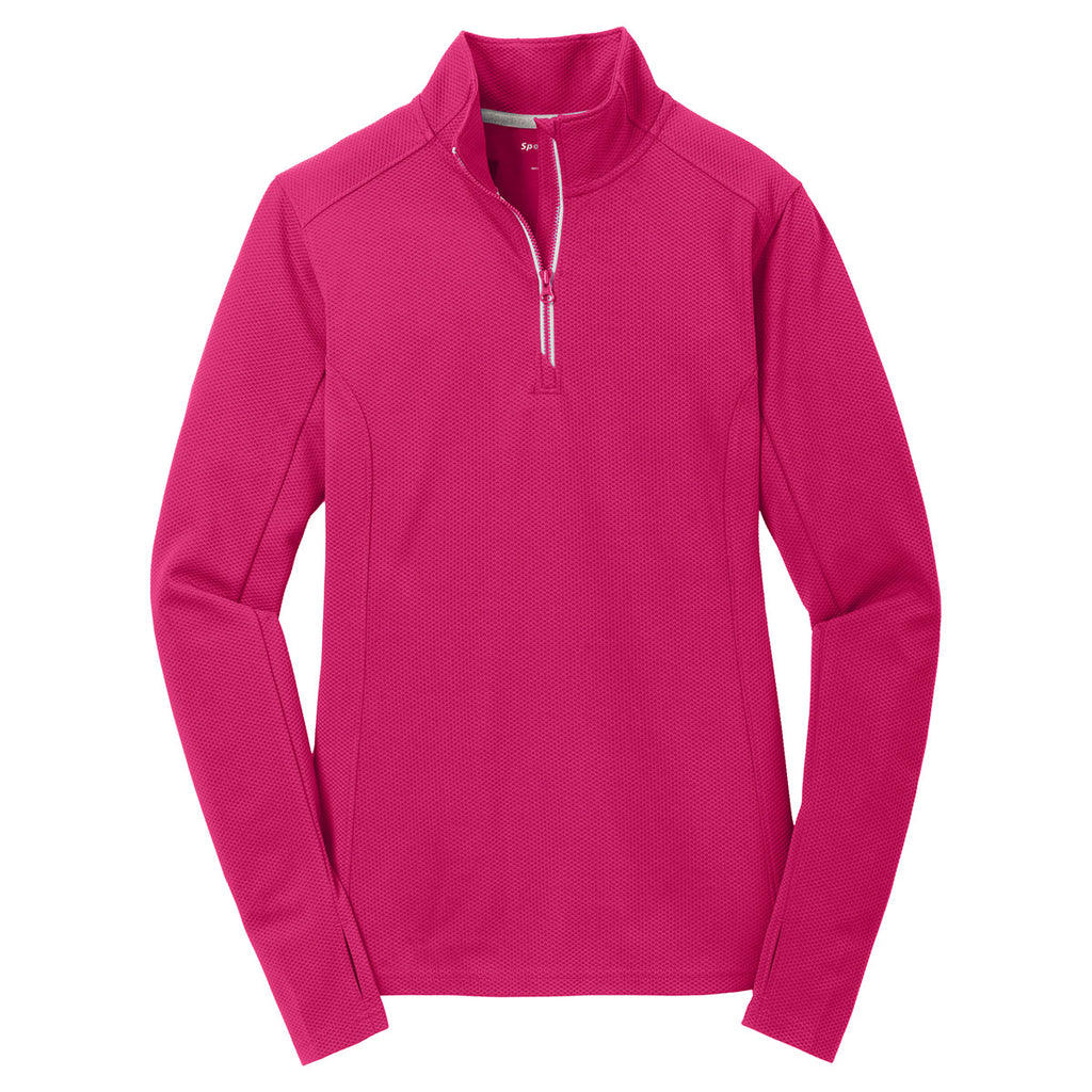 Sport-Tek Women's Pink Raspberry Sport-Wick Textured 1/4-Zip Pullover