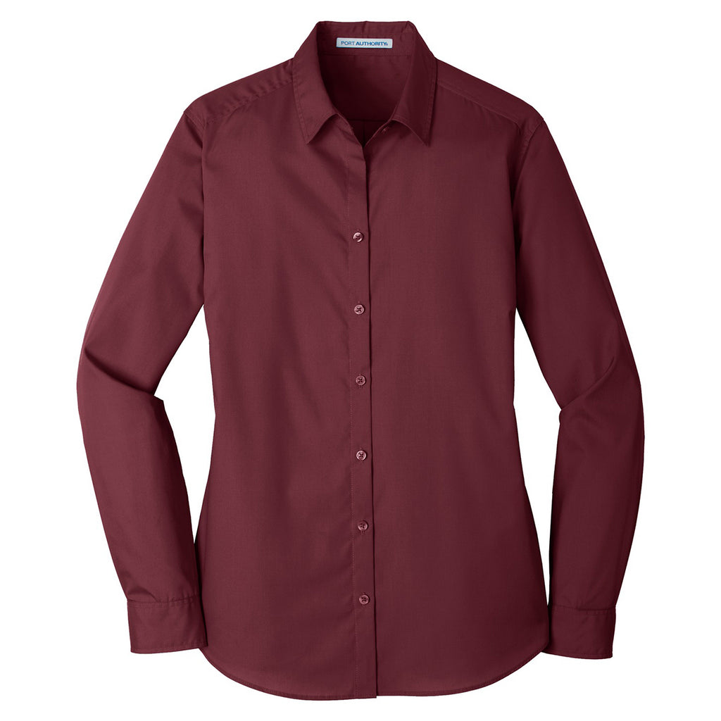 Port Authority Women's Burgundy Long Sleeve Carefree Poplin Shirt