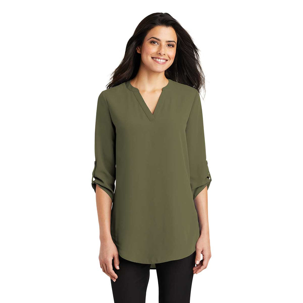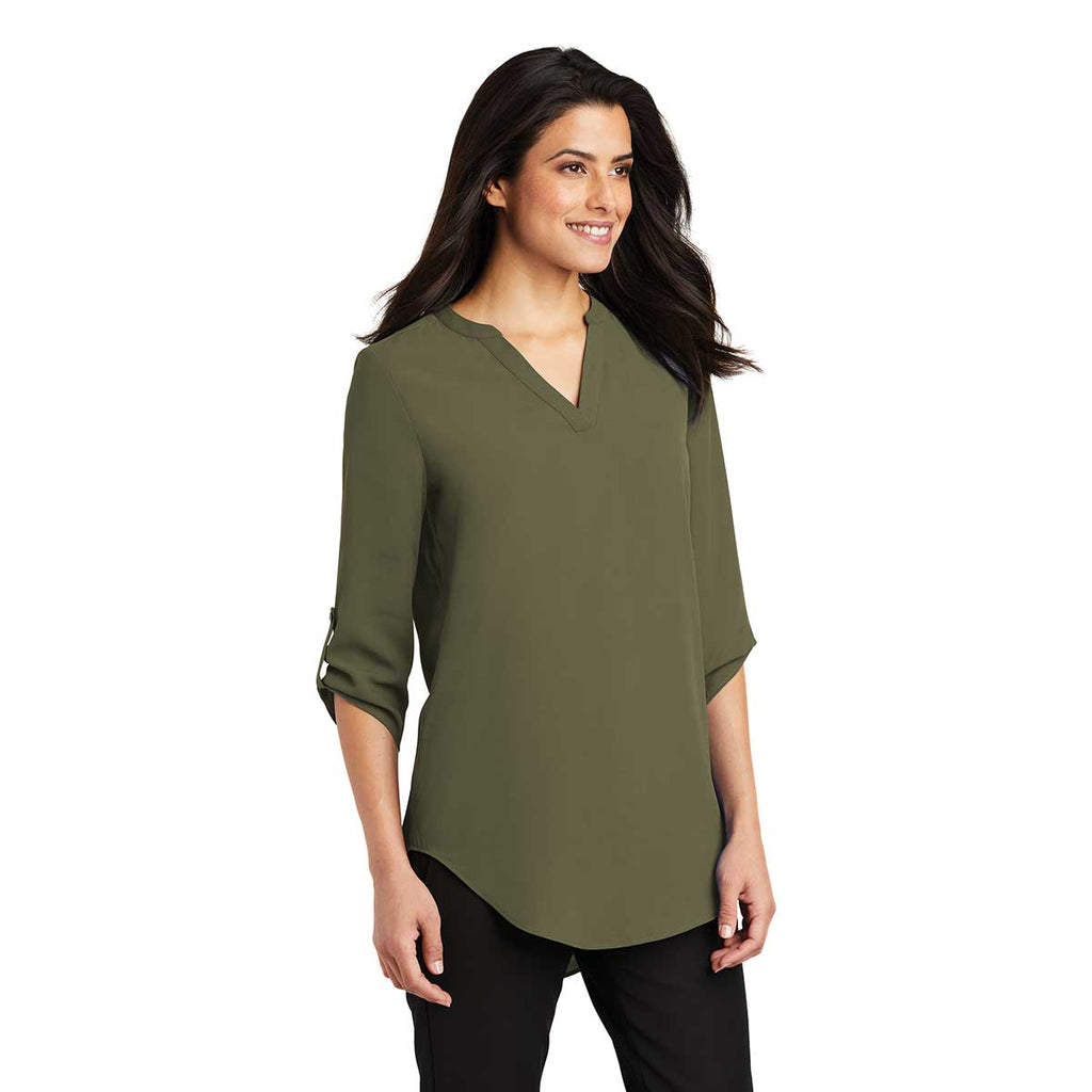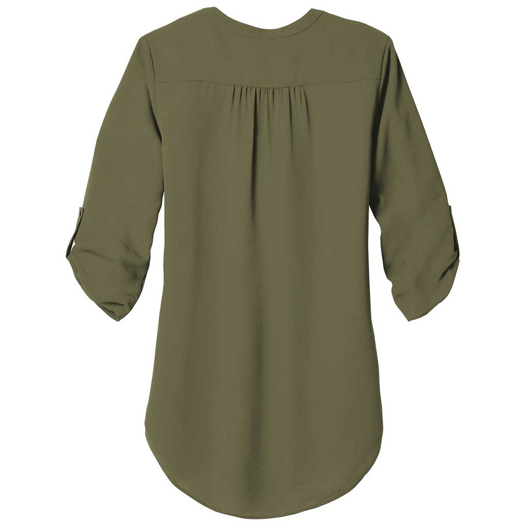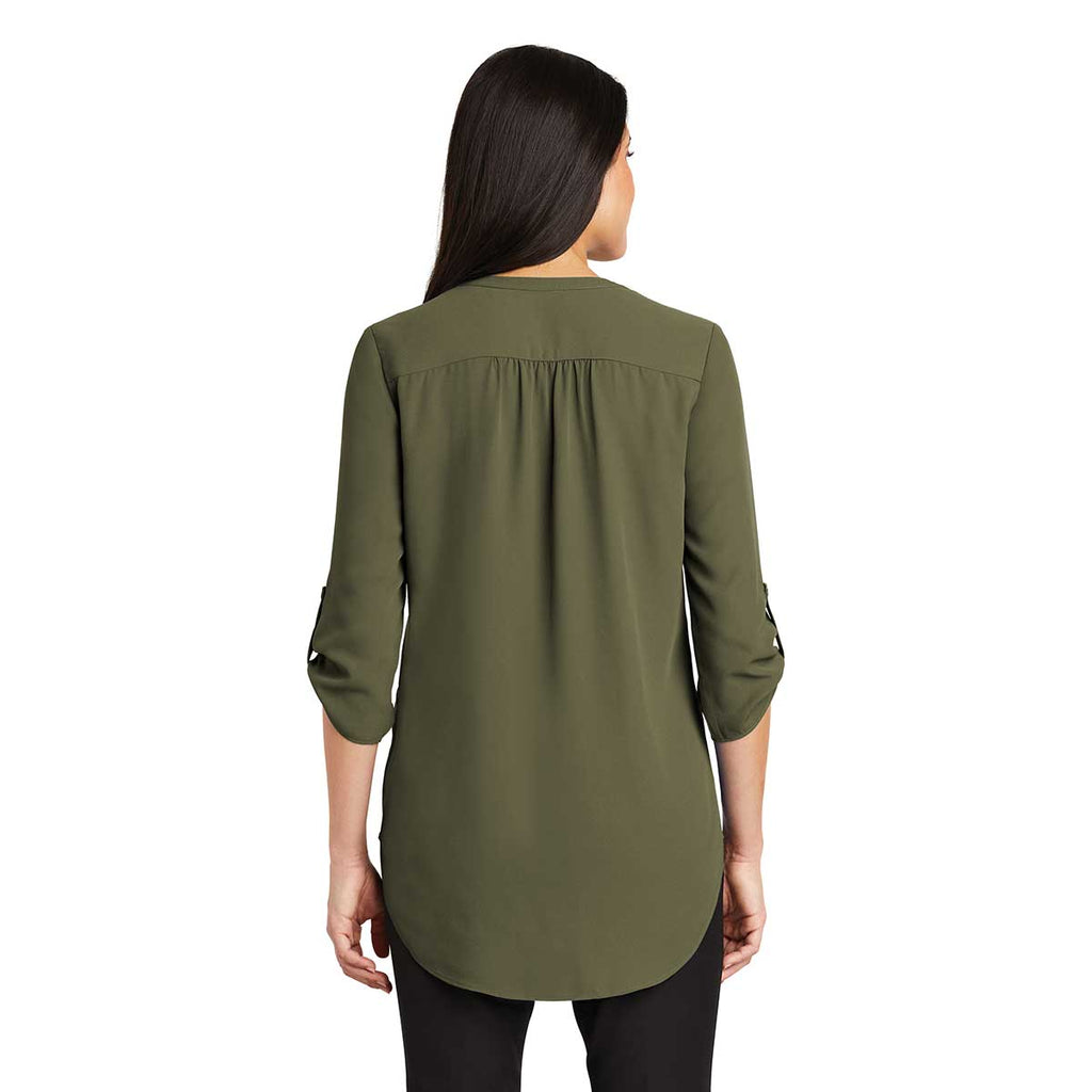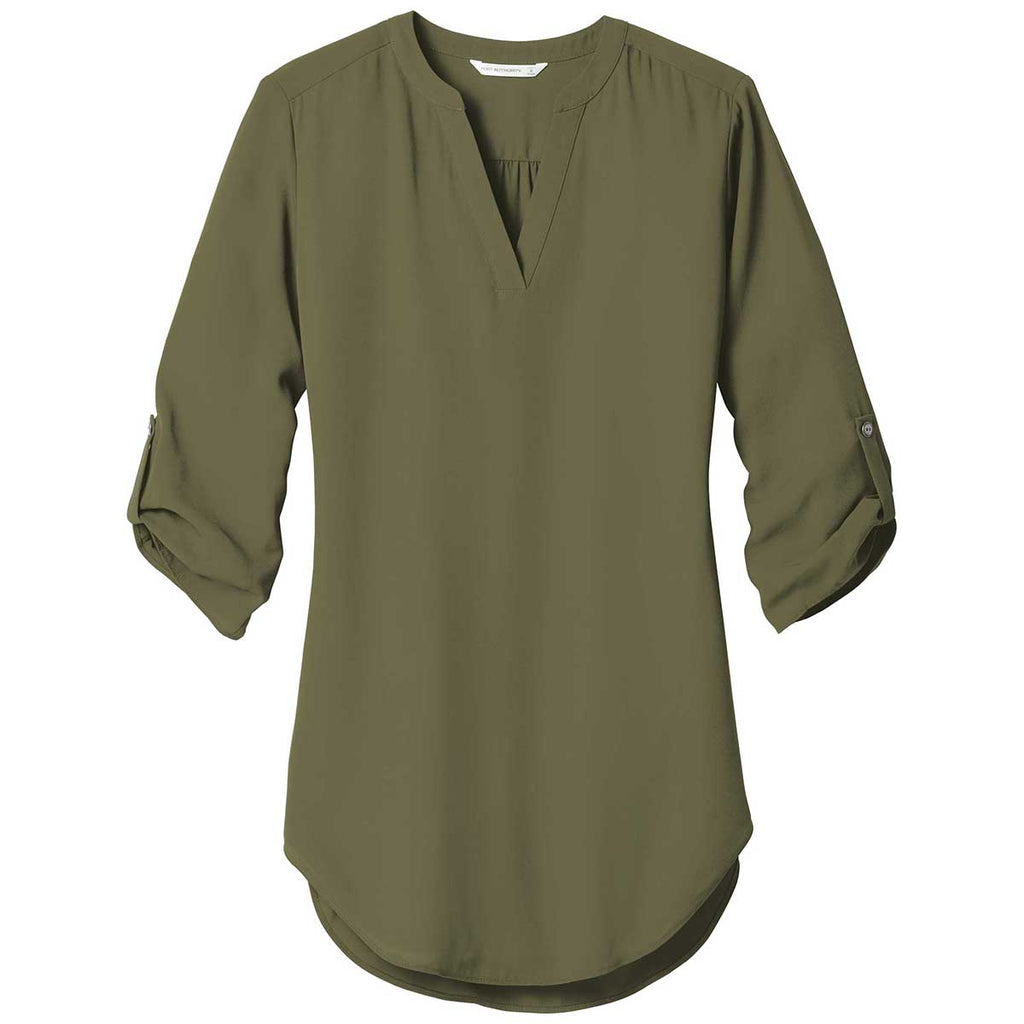 Port Authority Women's Deep Olive 3/4-Sleeve Tunic Blouse