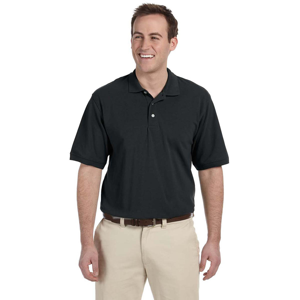 You do not have to shop at a Big and Tall store to take care of the corporate apparel needs for your taller employees. The Harriton Men's Black 5.6 oz. Tall Easy Blend Polo comfortably fits taller men to round out the fashion statement made by your dedicated team. Wrinkle resistant cotton and polyester blend to produce a silky feel that reduces fabric shrinkage. Set-in sleeves and side seam stitching add visual appeal to a stylish polo meant to wear for all occasions. The flat-knit collar and cuffs creates elegance that stands out at corporate social events. Add your company logo to generate a buzz for your brand.Highlights