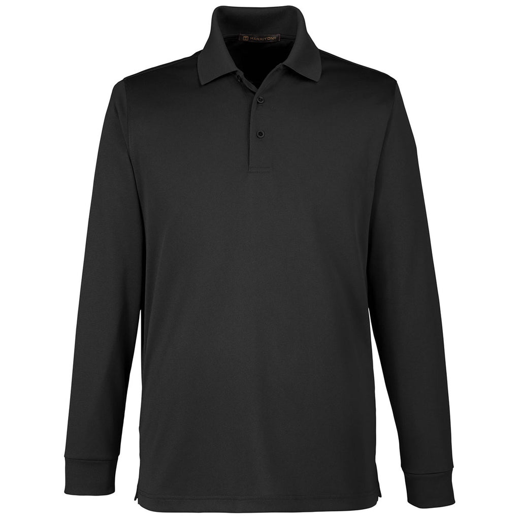 Harriton Men's Black Advantage Snag Protection Plus Long Sleeve Polo