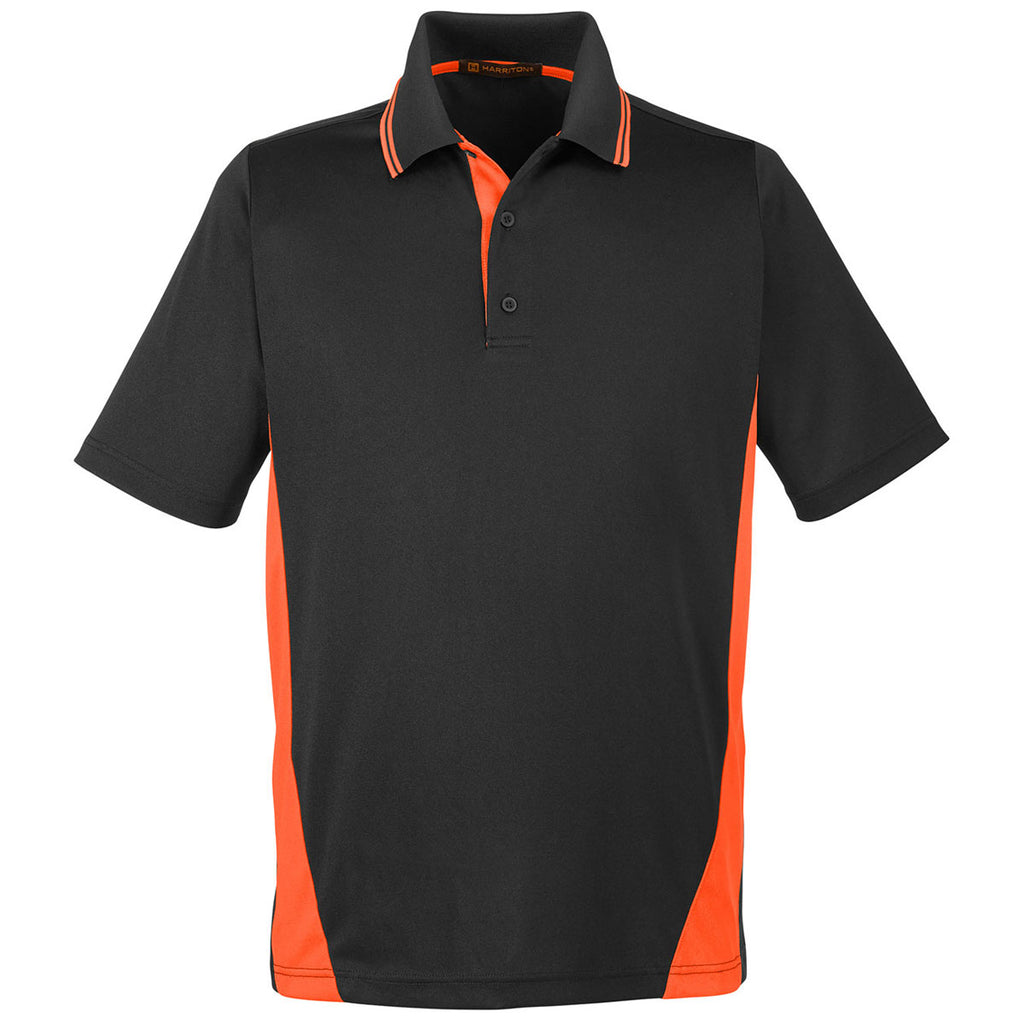 Harriton Men's Black/Team Orange Tall Flash Snag Protection Plus Colorblock Polo