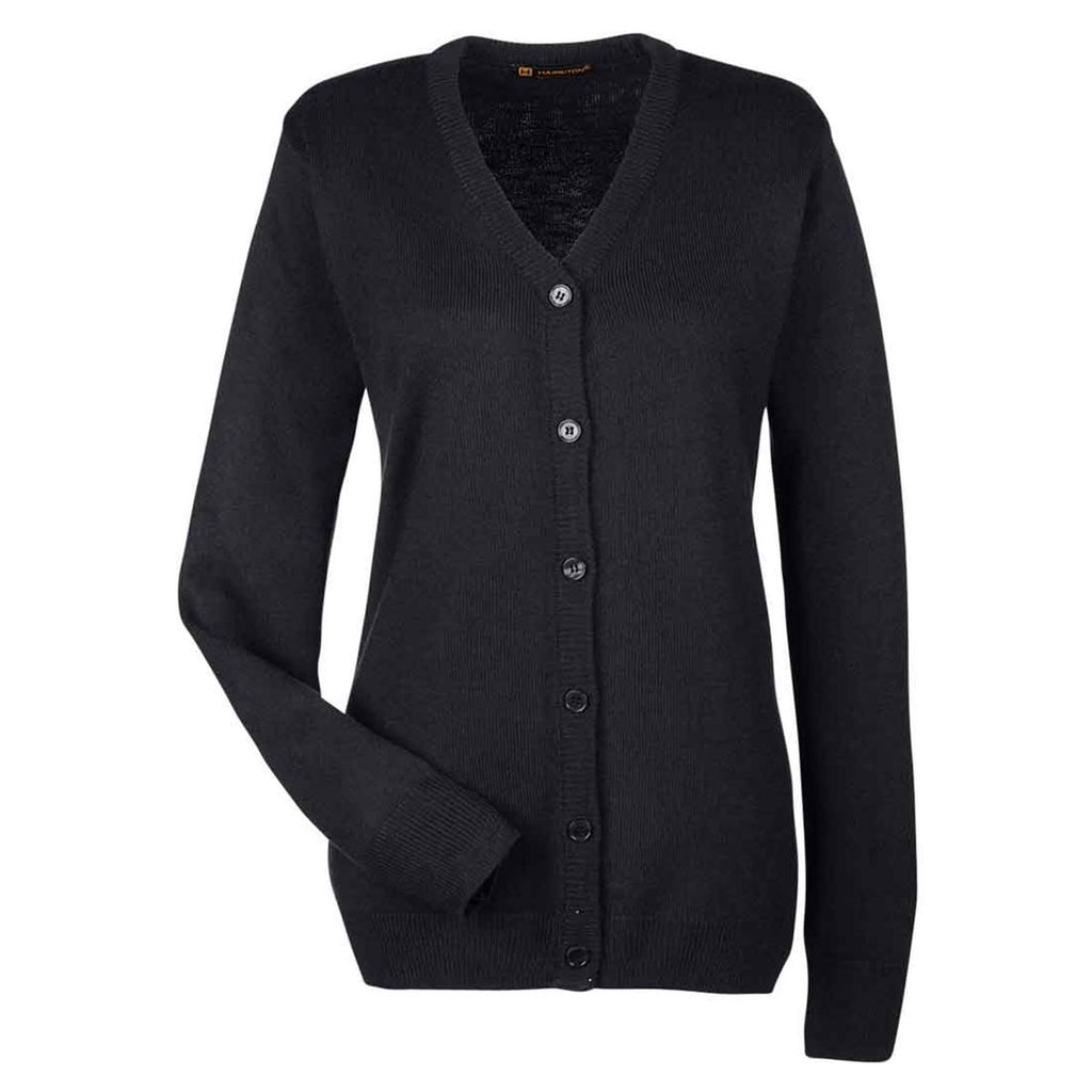 Harriton Women's Black Pilbloc V-Neck Button Cardigan Sweater