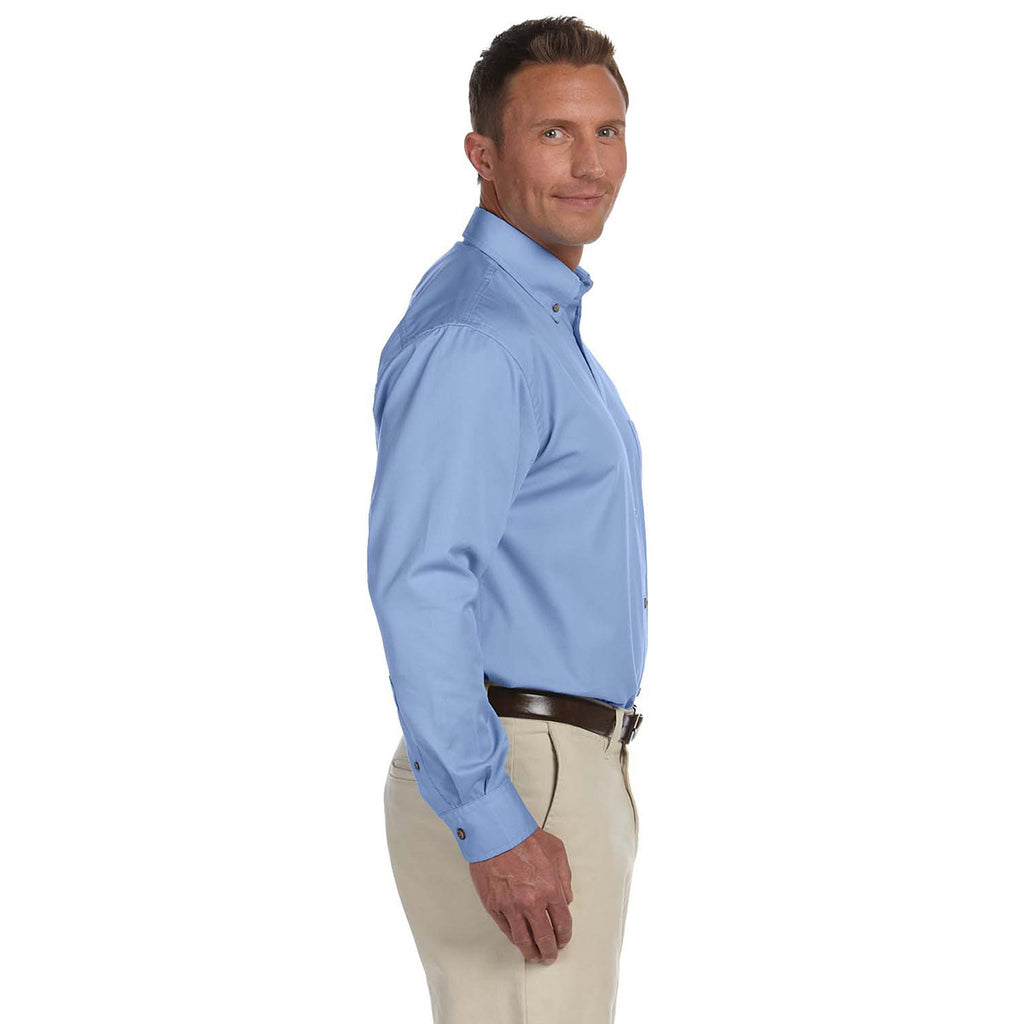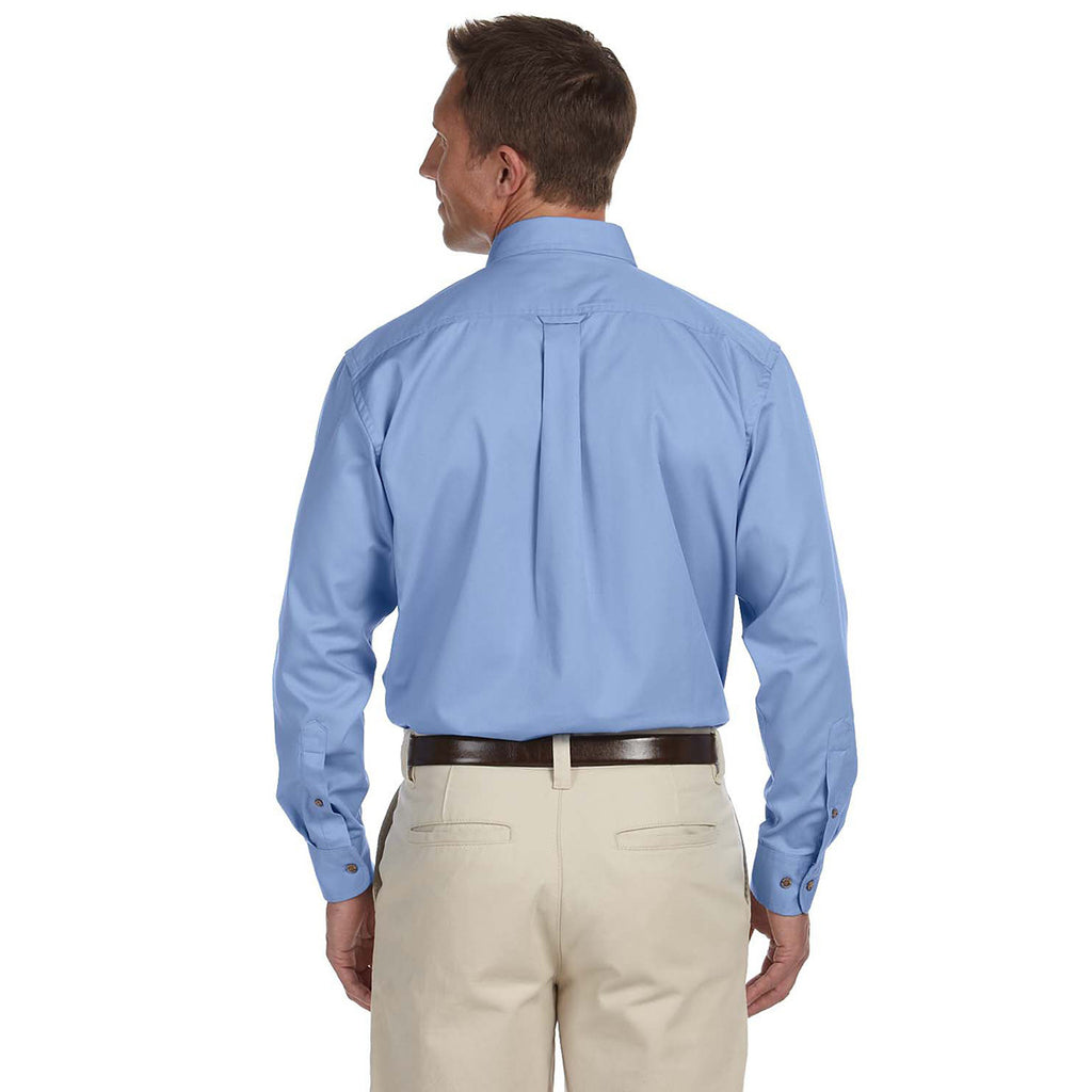 Harriton Men's Light College Blue Easy Blend Long-Sleeve Twill Shirt with Stain-Release