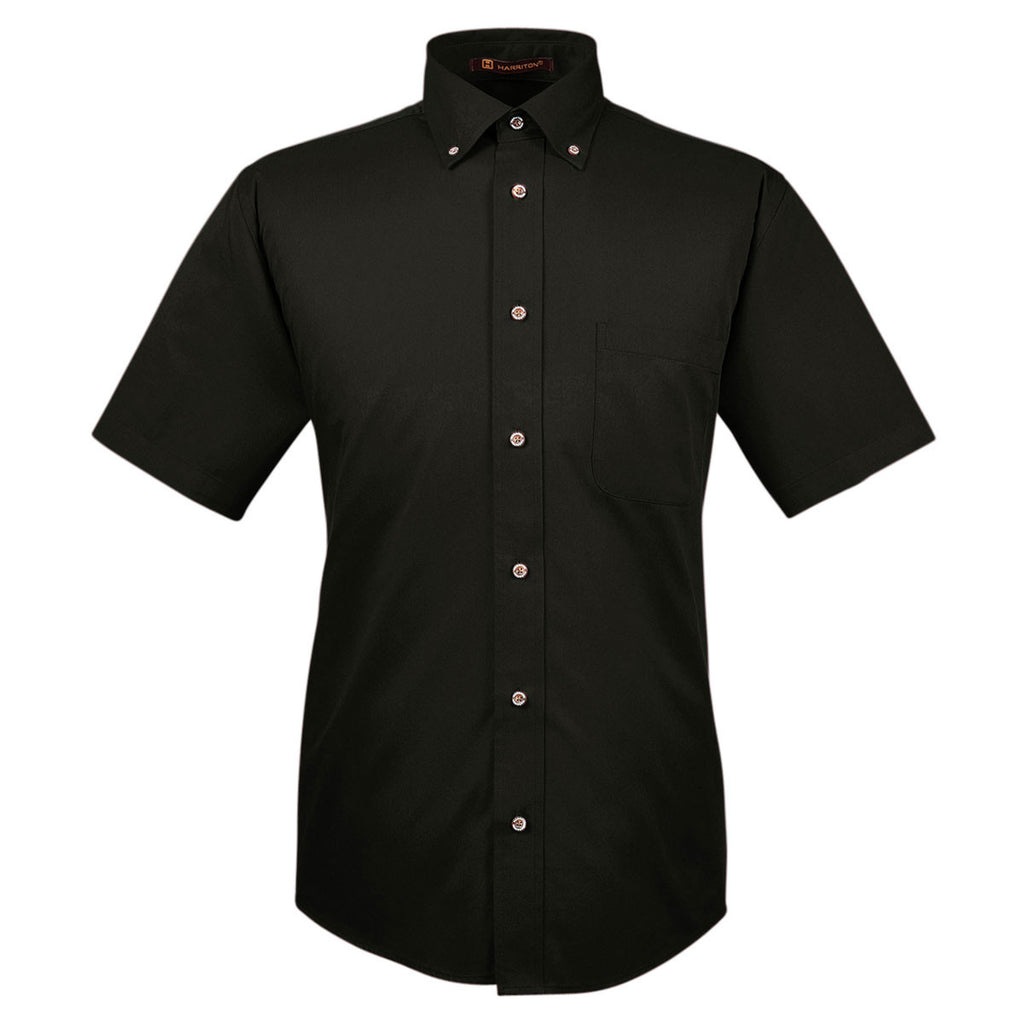 Harriton Men's Black Easy Blend Short-Sleeve Twill Shirt with Stain-Release
