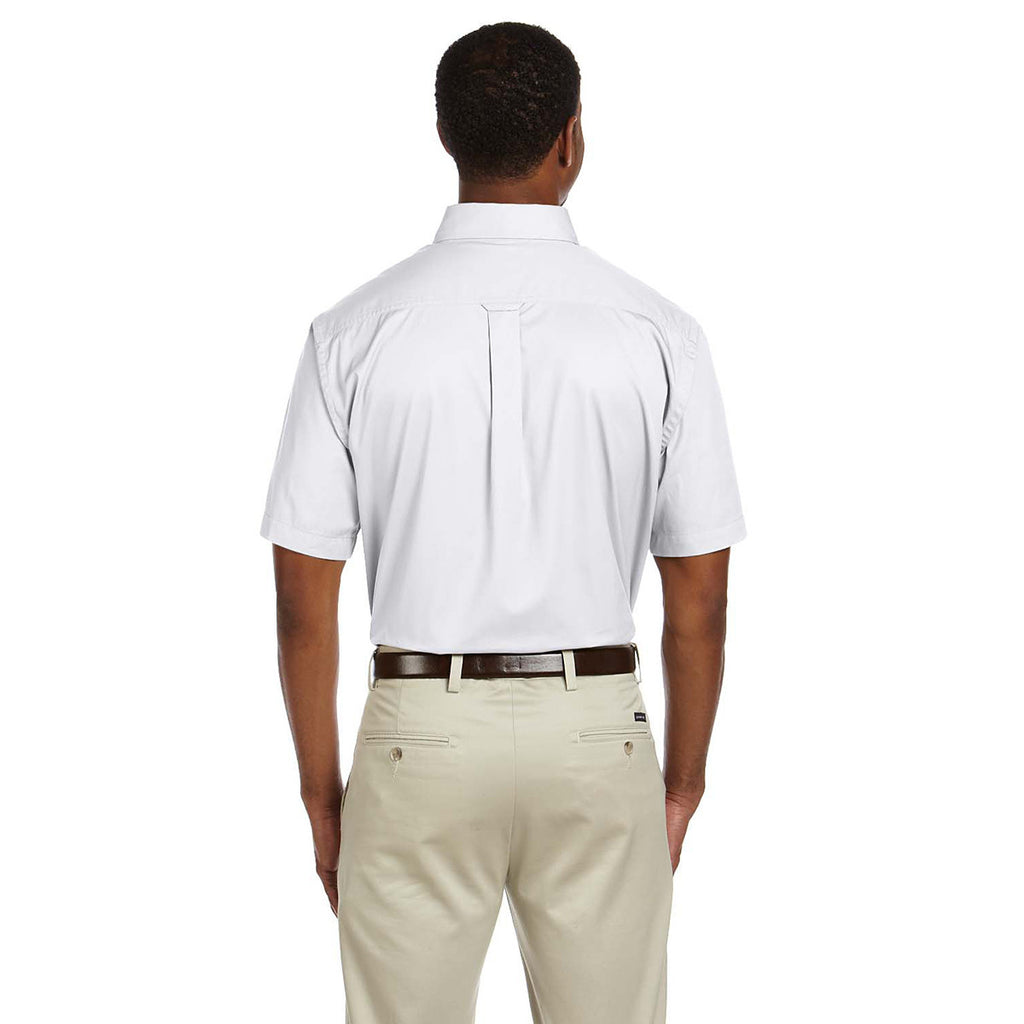 Harriton Men's White Easy Blend Short-Sleeve Twill Shirt with Stain-Release