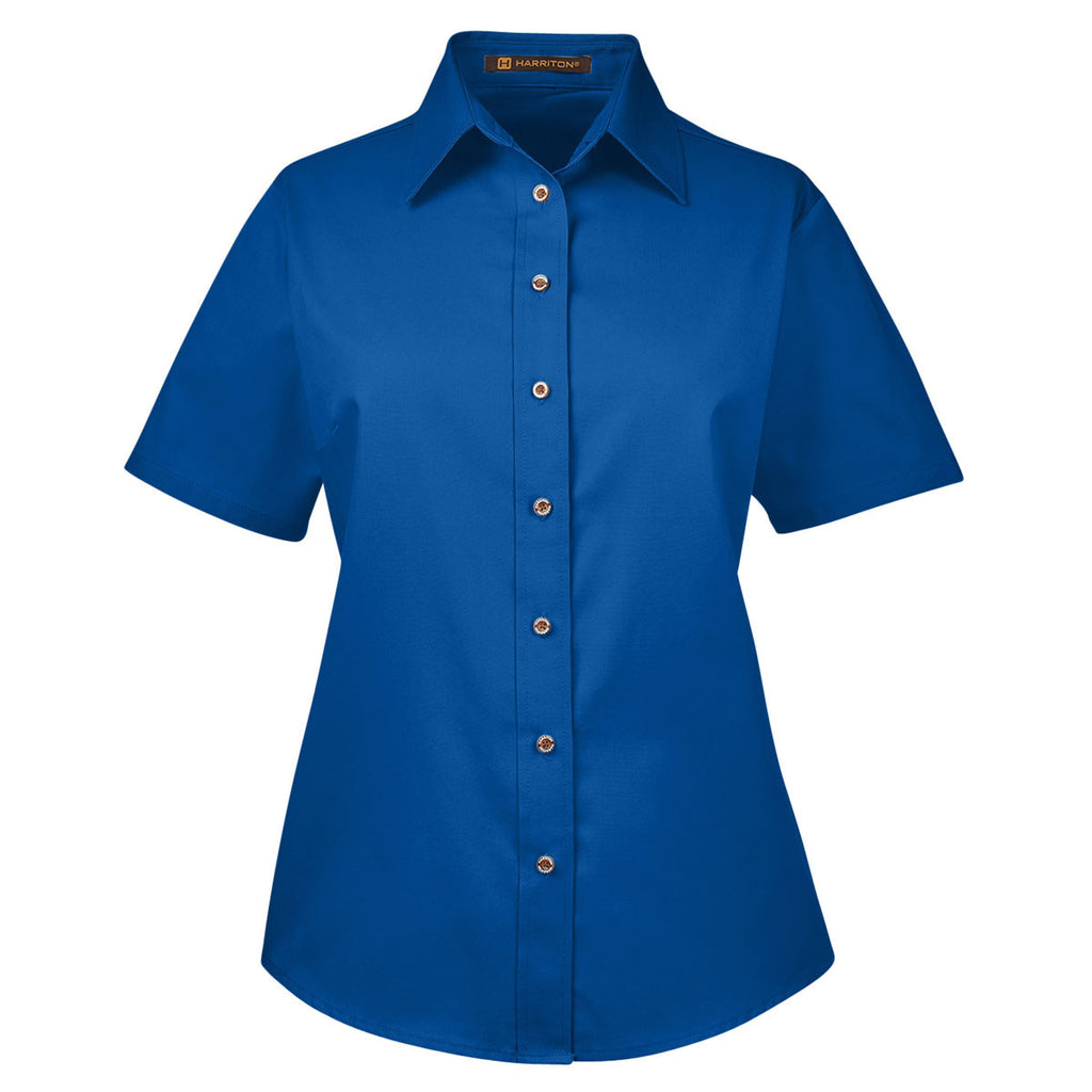 Harriton Women's French Blue Easy Blend Short-Sleeve Twill Shirt with Stain-Release