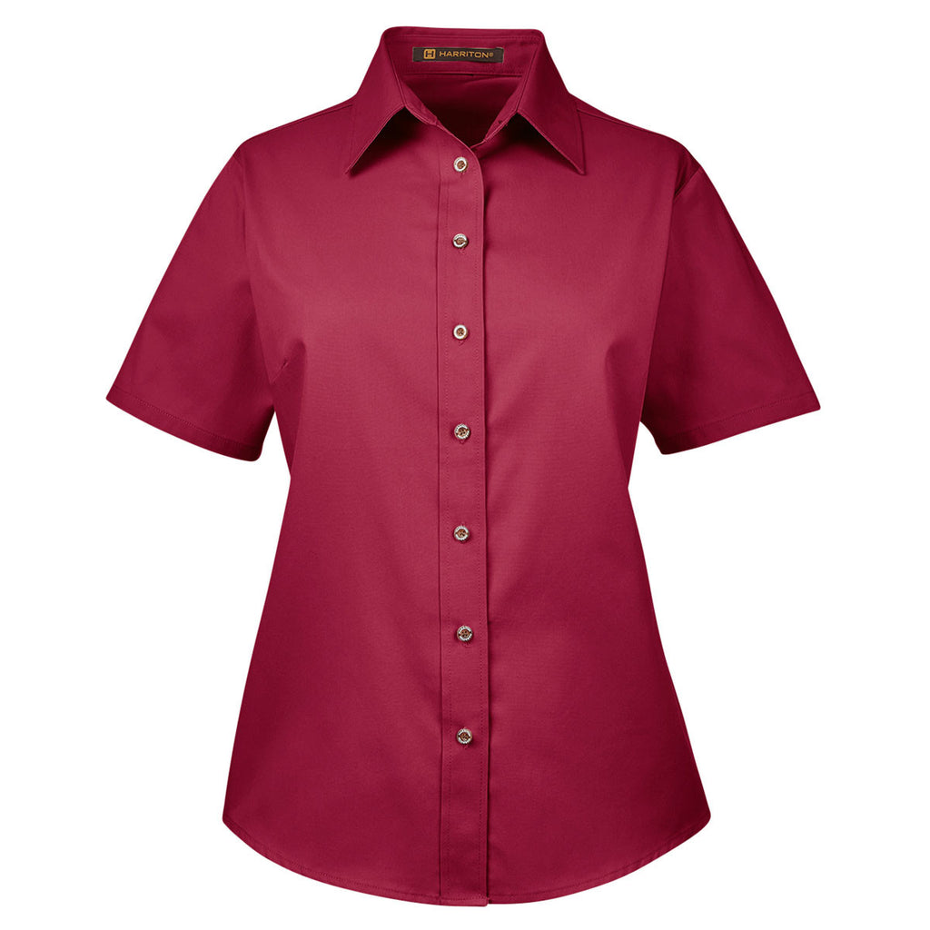 Harriton Women's Wine Easy Blend Short-Sleeve Twill Shirt with Stain-Release