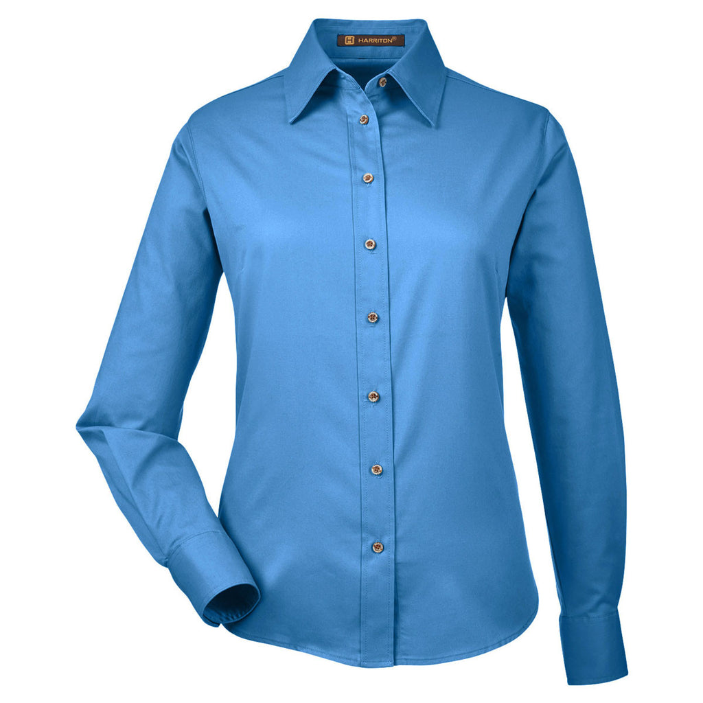 Harriton Women's Nautical Blue Easy Blend Long-Sleeve Twill Shirt with Stain-Release
