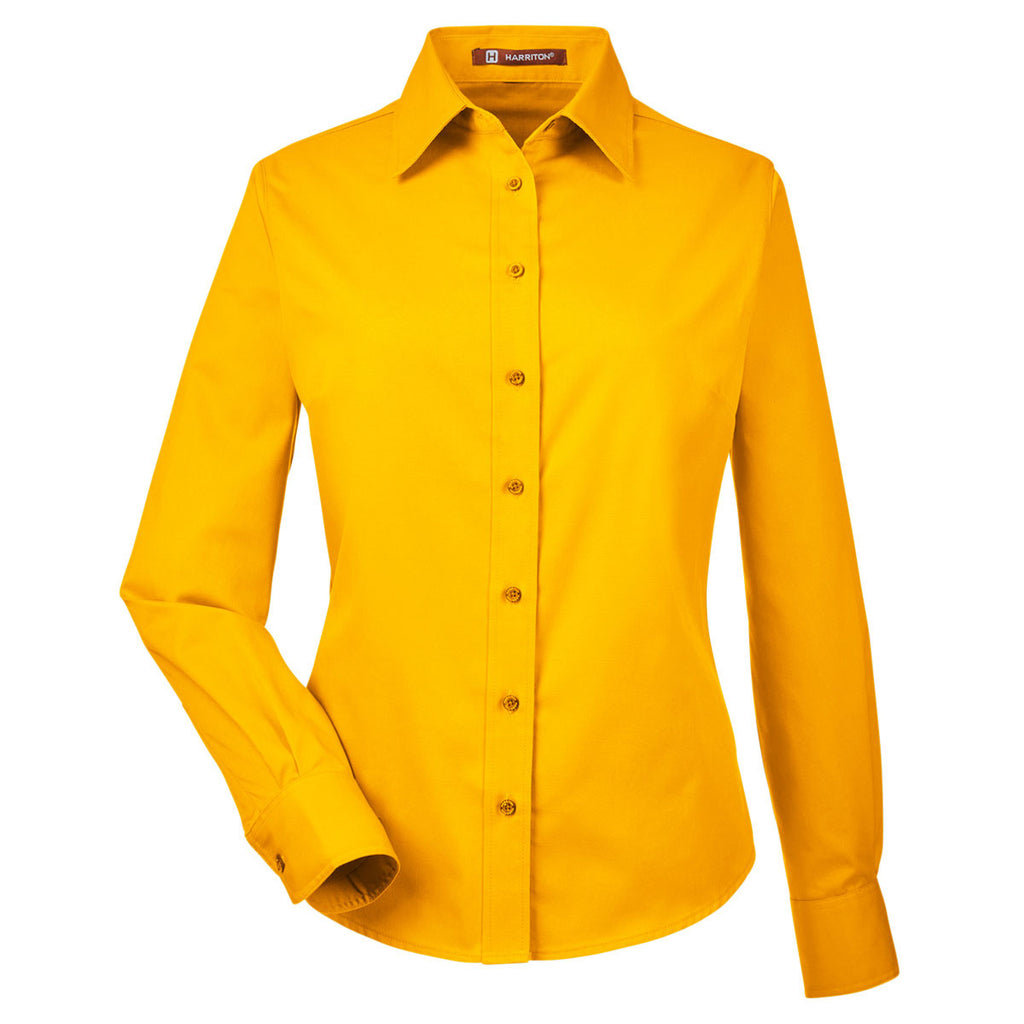 Harriton Women's Sunray Yellow Easy Blend Long-Sleeve Twill Shirt with Stain-Release