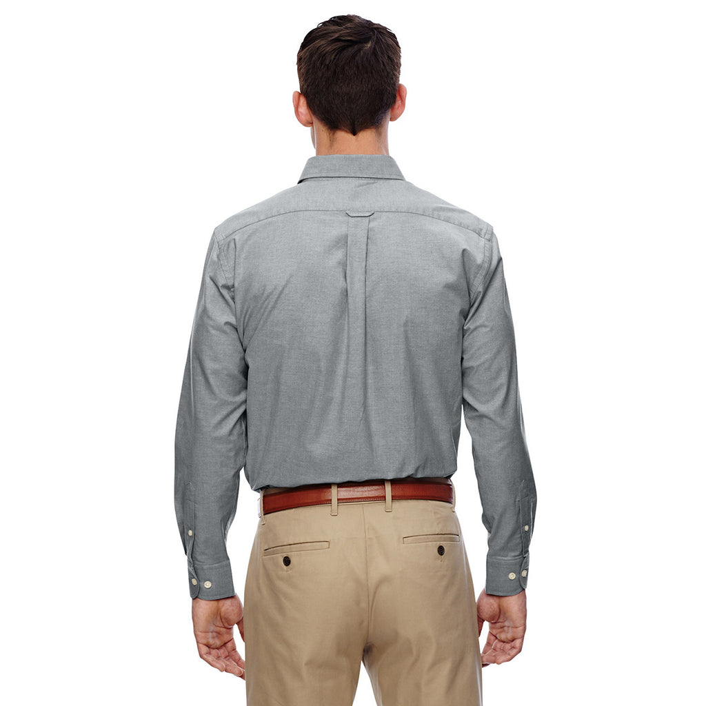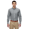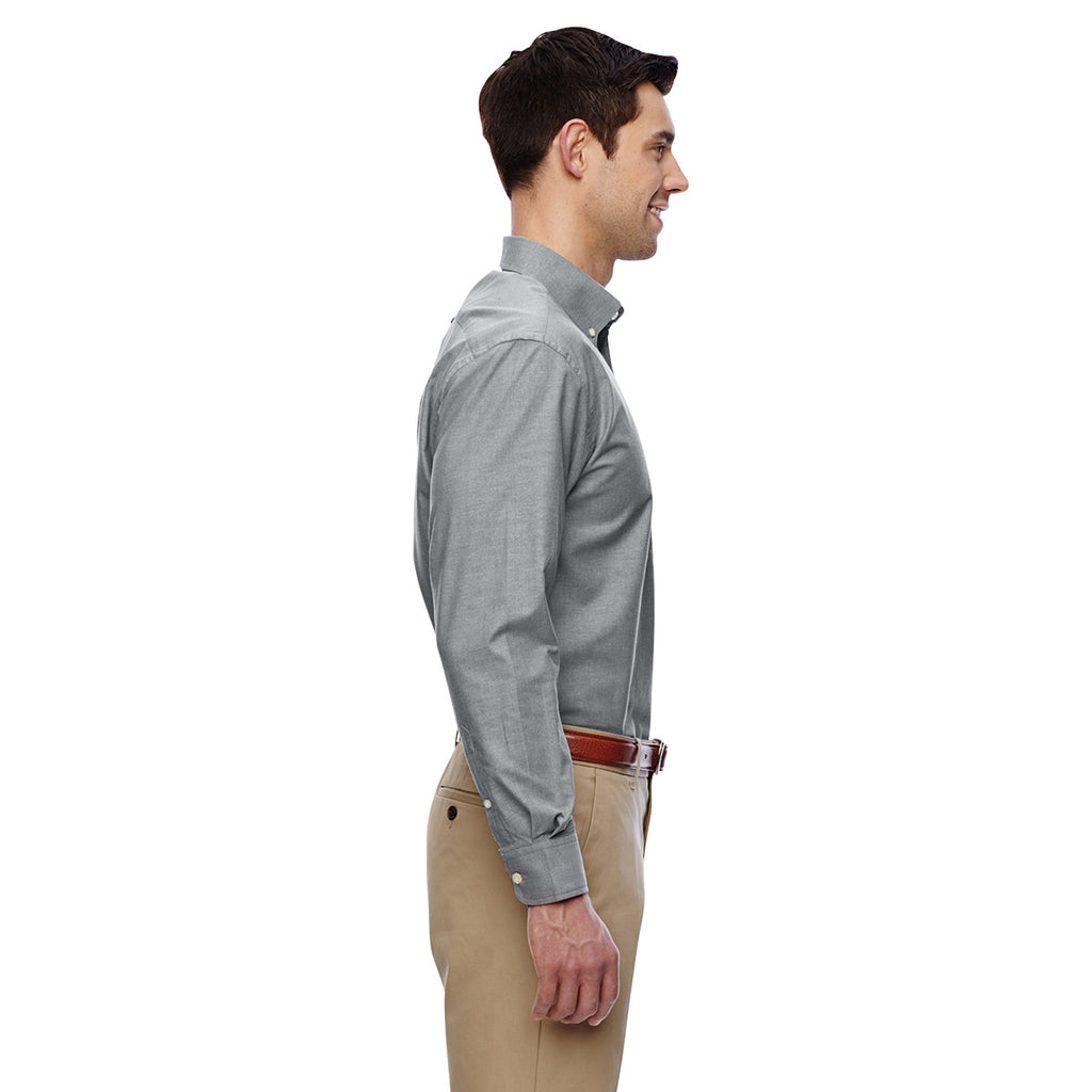 Harriton Men's Oxford Grey Long-Sleeve Oxford with Stain-Release