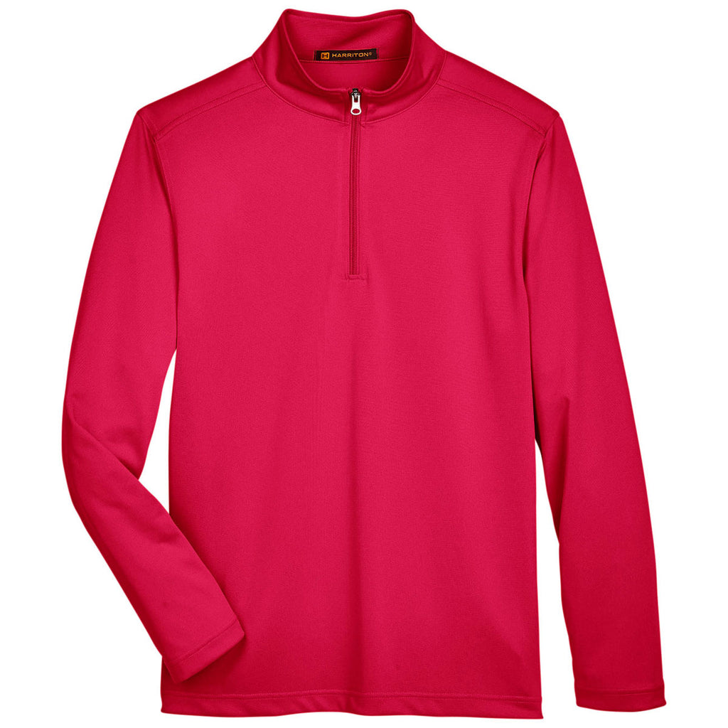 Harriton Men's Red Advantage Snag Protection Plus Quarter-Zip offers the best of form and function. It's a professional, comfortable and versatile promo item that's sure to garner impressions for your brand once embroidered with your company logo. Its moisture-wicking power wicks the sweat away from the skin to make for quick-dry and odor-free comfort all day. Designed with UV Protection for protection from the sun's rays making it perfect for anyone with a physical outdoor job. Constructed with an antimicrobial agent that keep bacteria at bay. Side vents ensure optimal breathability. Ideal for athletic and casual use and can be worn throughout the day and beyond.Corresponding Women's Style:Harriton Women's Red Advantage Snag Protection Plus Quarter-Zip