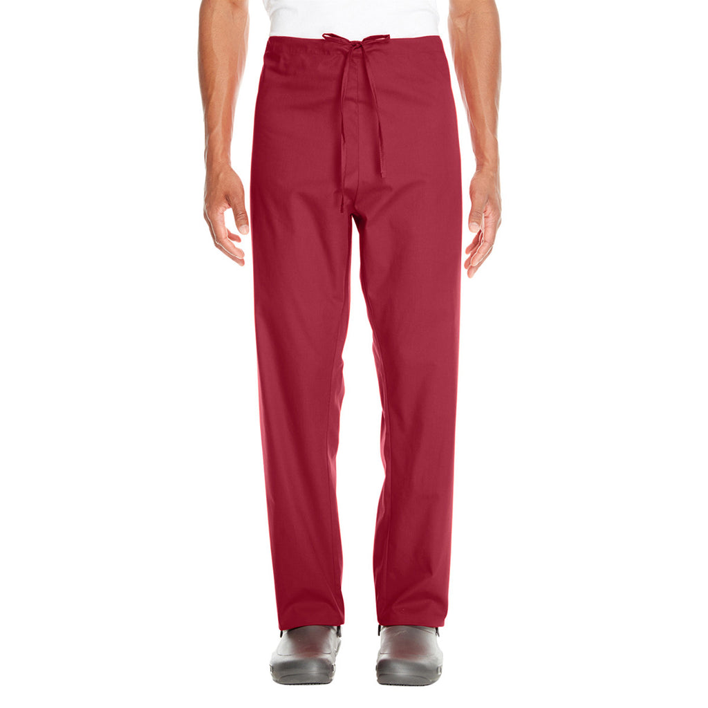 Attach your health care facility logo to the Harriton Men's Wine Restore 4.9 oz. Scrub Bottom to increase awareness of the top notch medical care you provide in the community. The 55% cotton and 45% polyester poplin scrub bottom ensures you remain comfortable throughout a hectic 12-hour shift. Rugged polyester resists the types of rips and tears that diminish the quality of other types of scrub garments. The convenient back pocket offers you a place to store vital medical charts and health care accessories that ease the pain suffered by patients. Pull the drawstring at the waist tighter to ensure the perfect scrub bottom fit.Corresponding Scrub Top Style: Harriton Men's Wine Restore 4.9 oz. Scrub Top