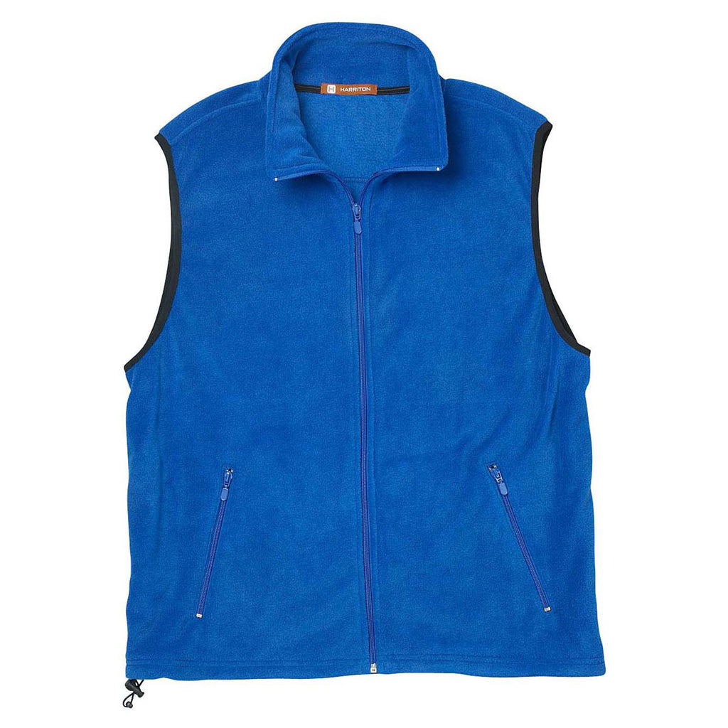 The Harriton Men's True Royal 8 oz. Fleece Vest features breathable fleece that ensures you remain comfortable all day long working outdoors. Rugged polyester fleece contains a non-pill finish that keeps the stylish vest on your back for years to come. Binding on the arm openings secures the vest to your shoulders, without restricting your movement outdoors. Front zippered pockets store your cell phone to keep you in touch with colleagues. The bottom hem includes a draw cord and toggles that enhance both the style and functionality of the versatile vest. Add your corporate logo and watch interest in your company soar.Highlights