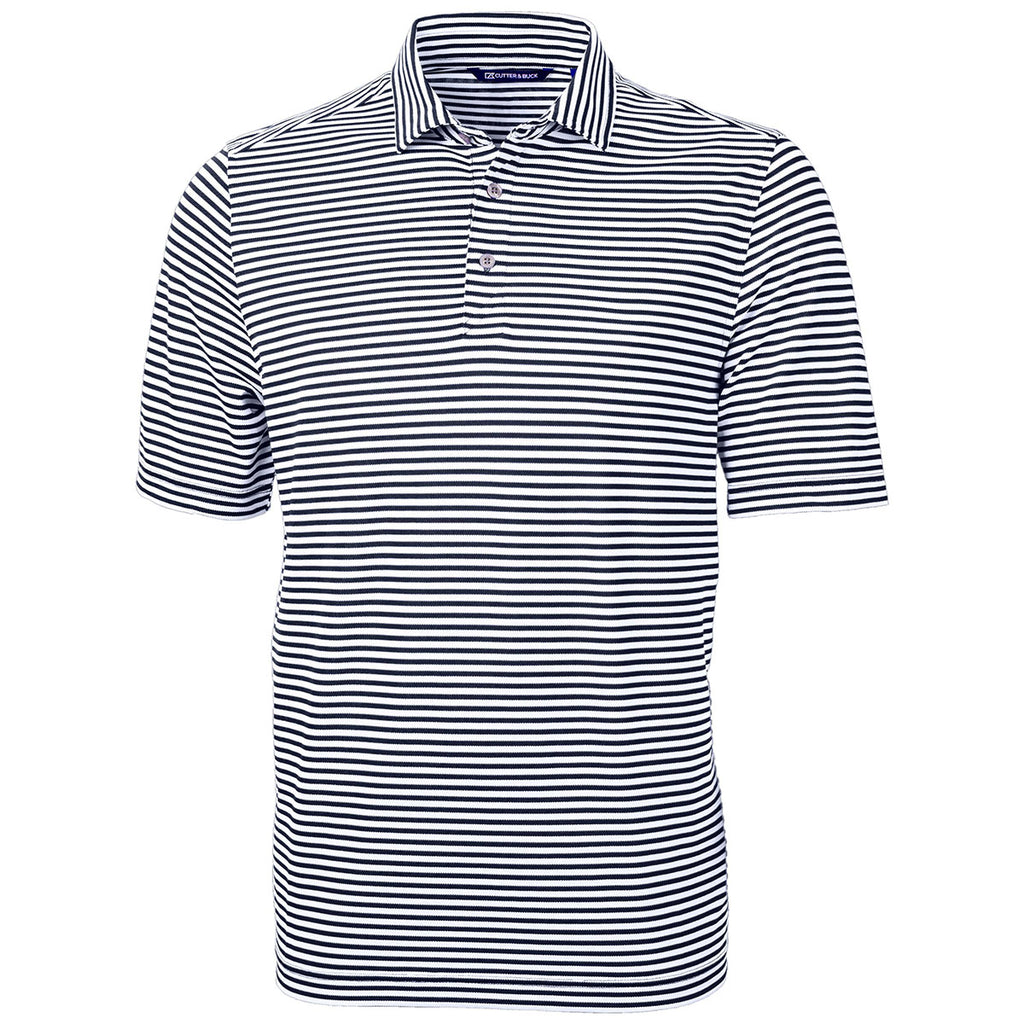 Cutter & Buck Men's Navy Blue Virtue Eco Pique Stripped Recycled Polo