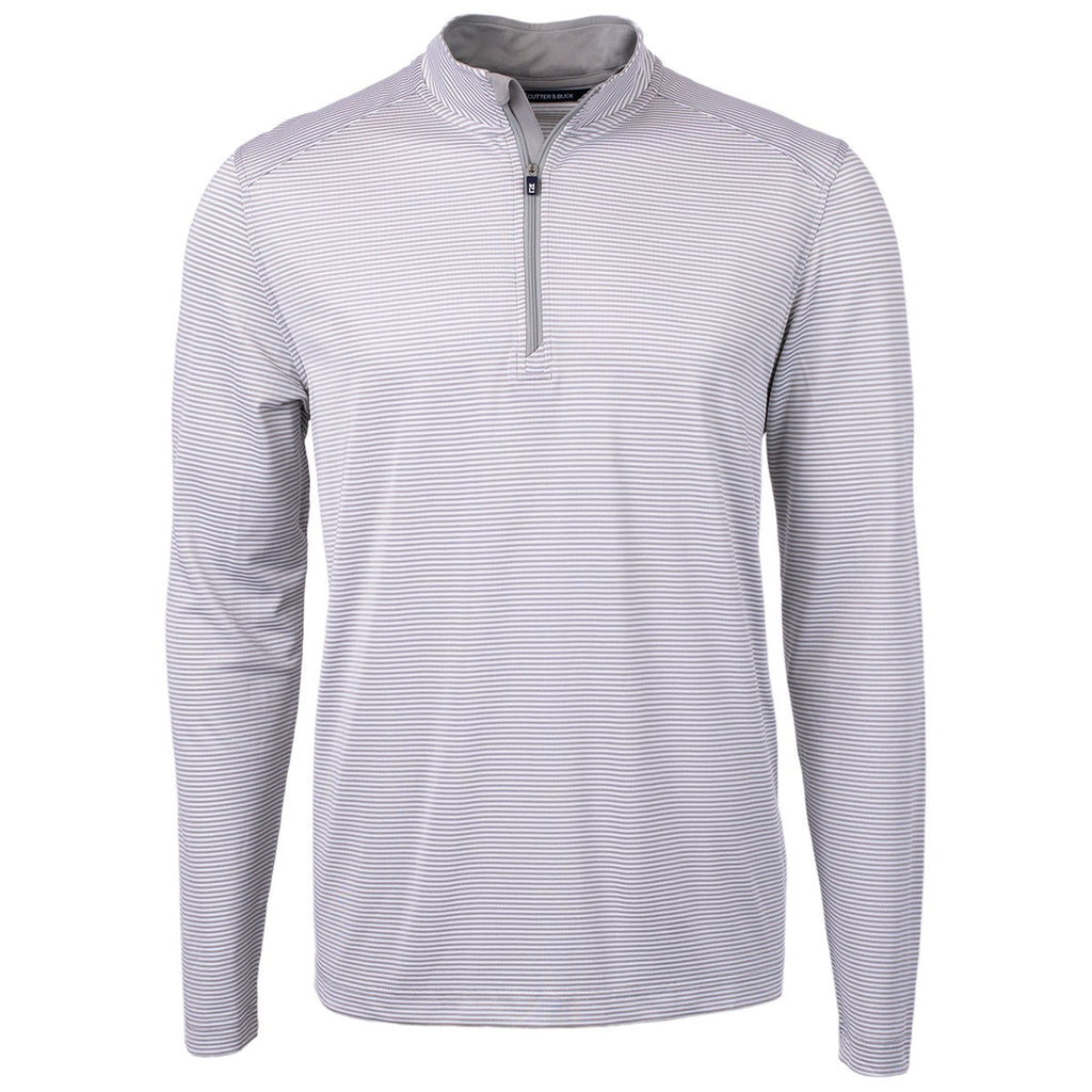 Cutter & Buck Men's Polished/White Virtue Eco Pique Micro Strip Recycled Quarter Zip
