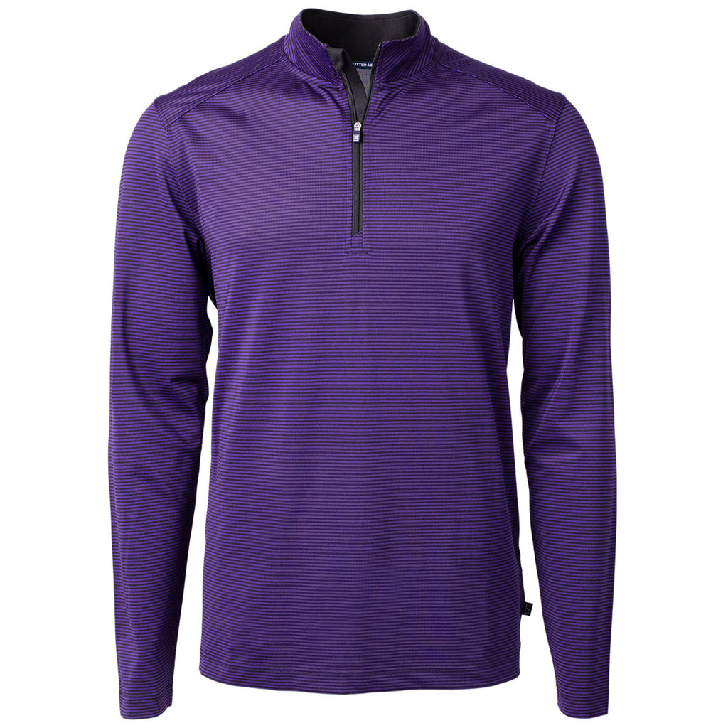 Cutter & Buck Men's College Purple/Black Virtue Eco Pique Micro Strip Recycled Quarter Zip