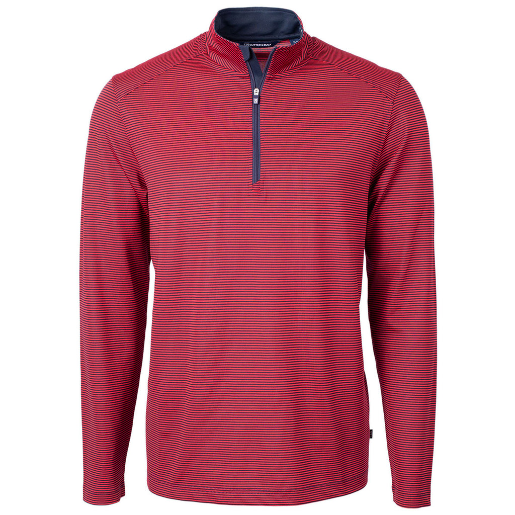 Cutter & Buck Men's Red/Navy Blue Virtue Eco Pique Micro Strip Recycled Quarter Zip