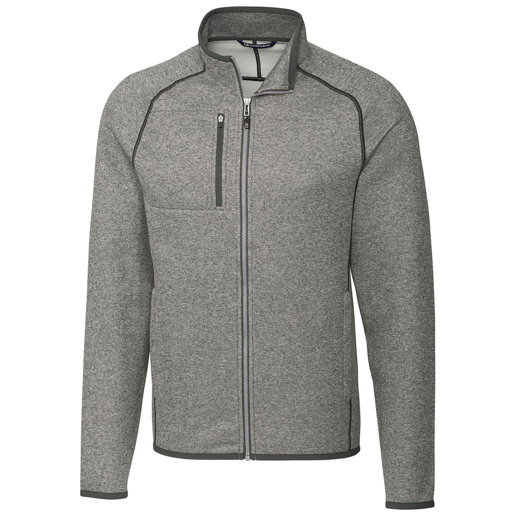 The Cutter & Buck Men's Polished Heather Mainsail Jacket offers a modern style with ideal warmth. Add your custom logo to the front of the jacket and you can turn this already exceptional item into an advertising item for your company. This corporate apparel product is available in a variety of appealing colors with welcome features such as a 100% polyester material, sweater knit material, brushed fleece interior, mock neck full zip, zippered chest pocket, and CB logo at back yoke. This jacket makes an excellent employee apparel gift as well as to hand out as a giveaway gift at any upcoming corporate event.Highlights