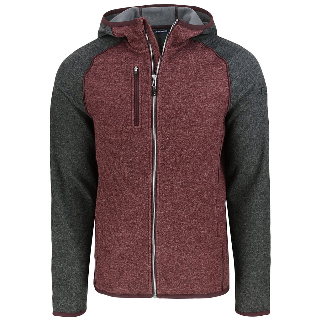 Cutter & Buck Men's Bordeaux Heather/Charcoal Heather Mainsail Full Zip Hooded Jacket