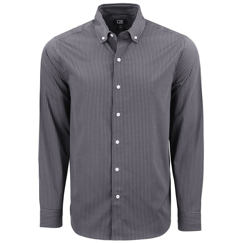 Cutter & Buck Men's Black/Elemental Grey Skyline Epic Confidence Recycled Gingham Long Sleeve Dress Shirt