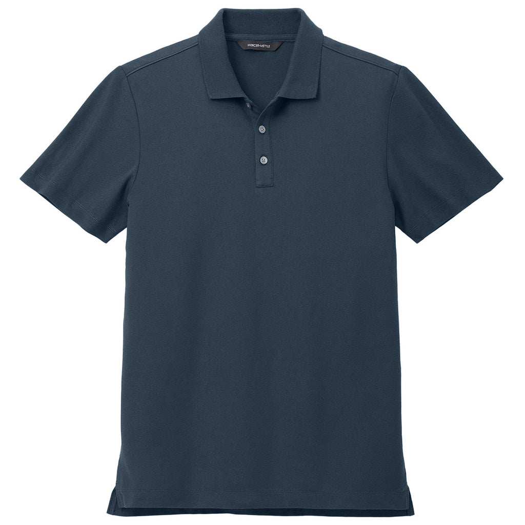 Create a corporate logo for the Mercer+Mettle Men's Night Navy Stretch Pique Polo to enjoy an office worthy look for everyone from board members to the lowest ranking employees. The lightweight polo with 3-button placket, anti-curl collar, and side vents offers a high-end look with a budget-friendly price. Place your order today.