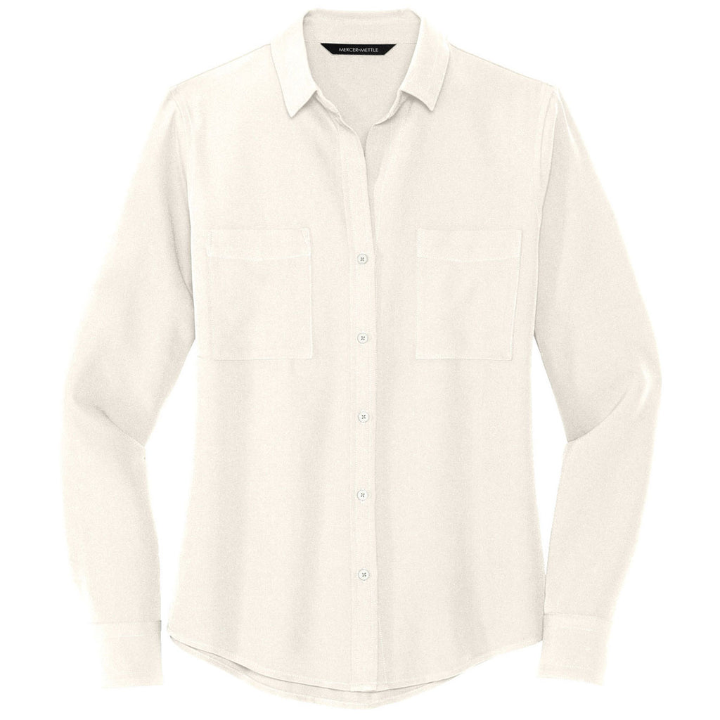 Mercer+Mettle Women's Ivory Chiffon Stretch Crepe Long Sleeve Camp Blouse