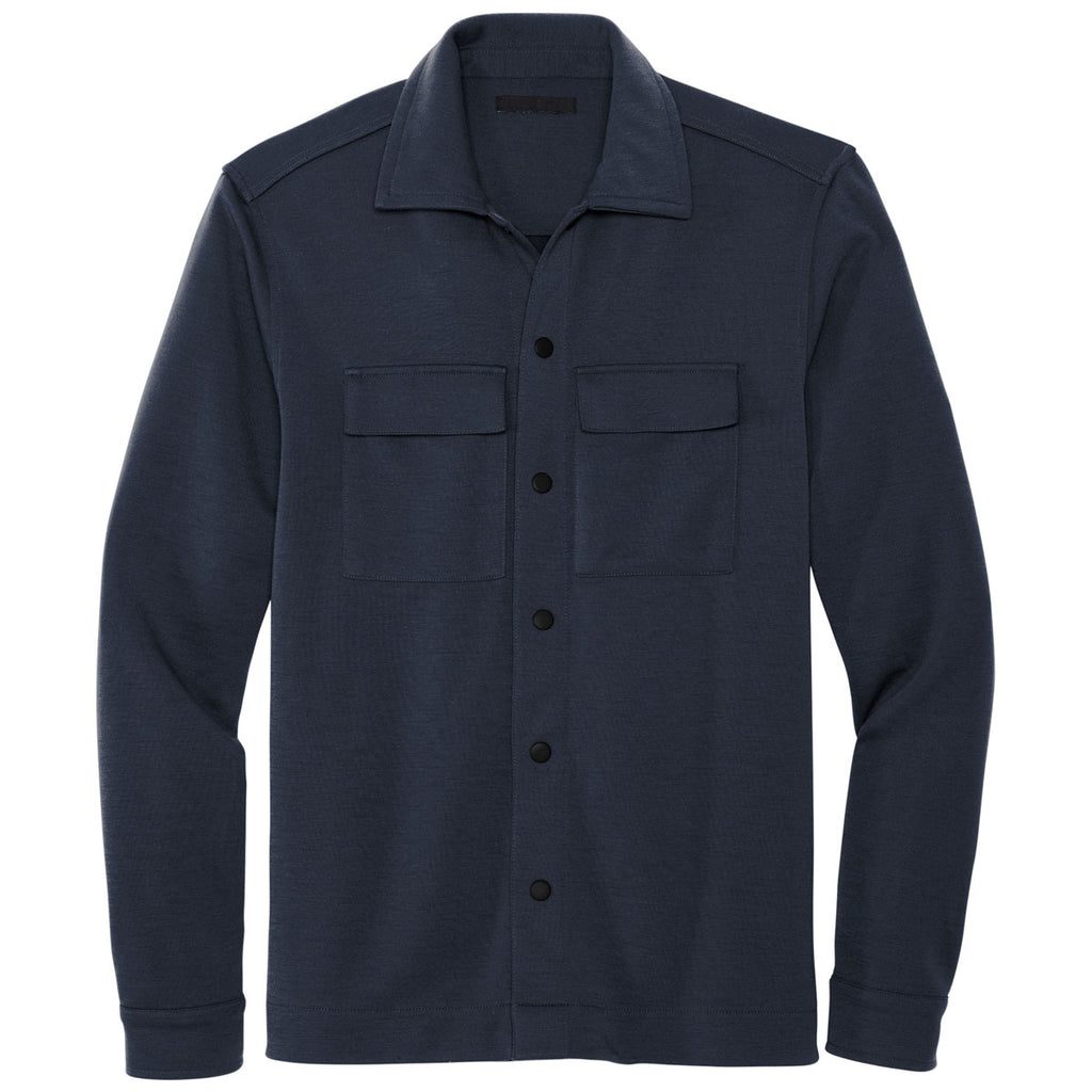 The custom logo Mercer+Mettle Men's Night Navy Double-Knit Snap Front Jacket is a company giveaway item everyone is going to want. You can print up this item in bulk quantity and hand it out to your employees for a job well done. Make sure you print up enough and hand them out as work from home gifts, too.Highlights