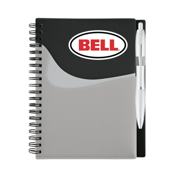 - 70-sheet spiral bound lined notebook with brilliant translucent color covers and matching translucent ballpoint pen (black ink).