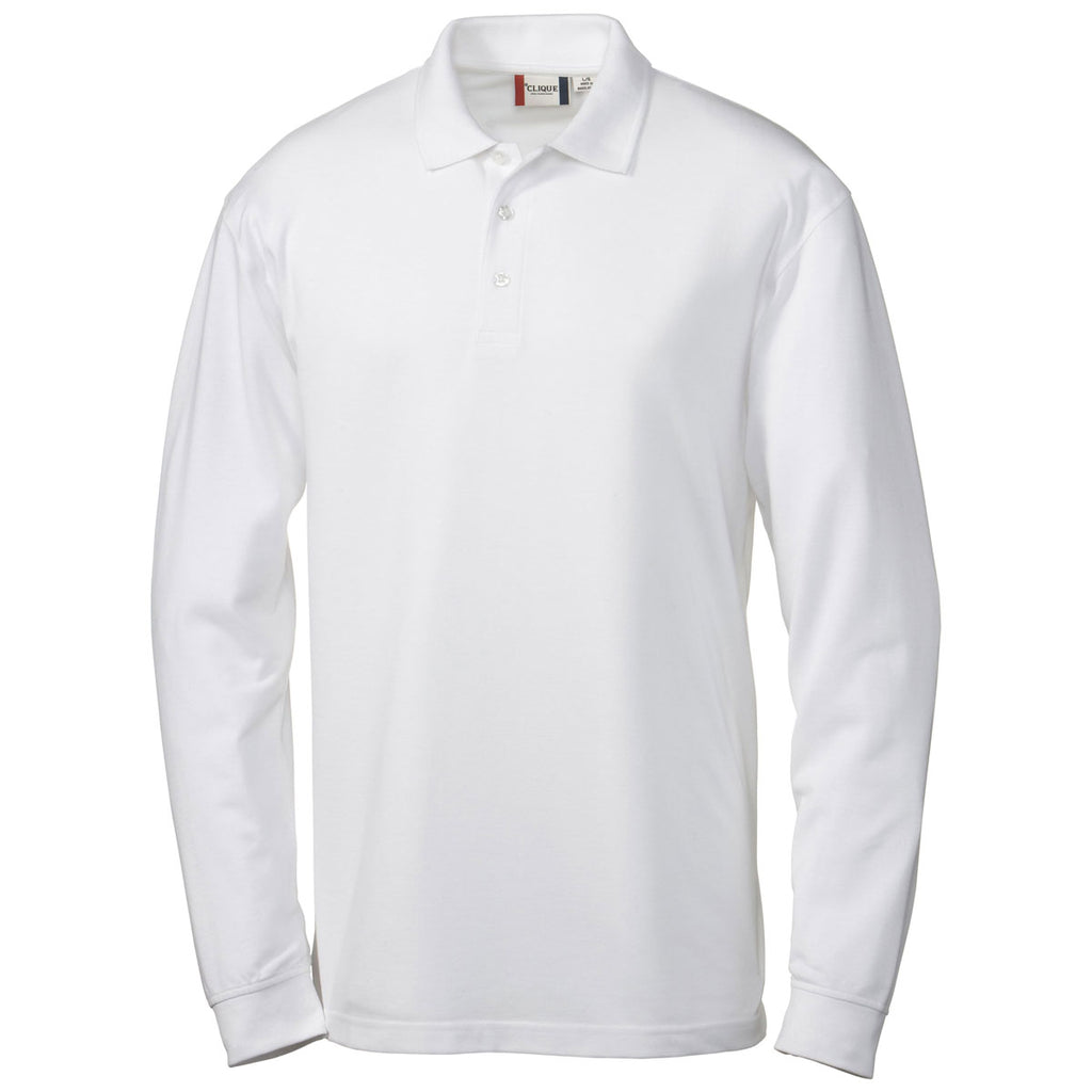 For versatile company apparel, pair the corporate logoed Clique Men's White Long Sleeve Evans with casual jeans or more formal dress slacks. The blended cottons and polyester fabric delivers super softness and long lasting durability. Add a custom logo on the large embroidery area to connect with professional peers at sales conferences. The 3M stain repel and release finish ensures you look your best throughout a hectic day on the road. Side vents help improve the flow of air around the body to keep you comfortably dry and cool. A touch of spandex improves body movement flexibility.Corresponding Women's Style: Clique Women's White Long Sleeve Elmira Polo