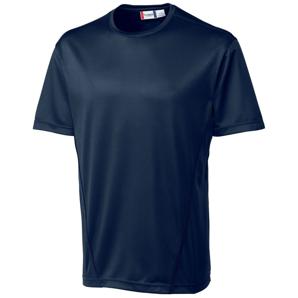 For company apparel the men on your corporate team can wear in the field and on a softball diamond, order the chic Clique Men's Dark Navy Ice Sport Tee. The mold breaking design of the tee includes contrast piping details and double layer neck trim. Open sleeves give you the advantage when swinging a bat or a driver from golf tee boxes. Pieced shoulders present a symmetrical appearance that makes your company team stand out for all the right fashion reasons. Screen print a custom logo to increase awareness for your brand at professional networking events.Highlights