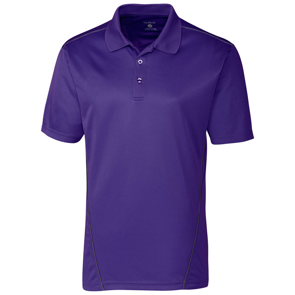 When the heat and humidity increase, remain comfortably dry under the collar by wearing the company logoed Clique Men's College Purple Ice Sport Polo. The short sleeve shirt uses moisture wicking technology to evaporate rain and perspiration quickly. Open sleeves allow you more room to move the arms when you take backswings on a golf course. Hand out the stylish polos to everyone that attends the next corporate sponsored golf tournament. The sleek rib knit collar will grab the attention of everyone you meet at a civic event. Attach a custom logo on the large embroidery area to turn all the attention into sales.Corresponding Women's Style:Clique Women's College Purple Ice Sport Polo