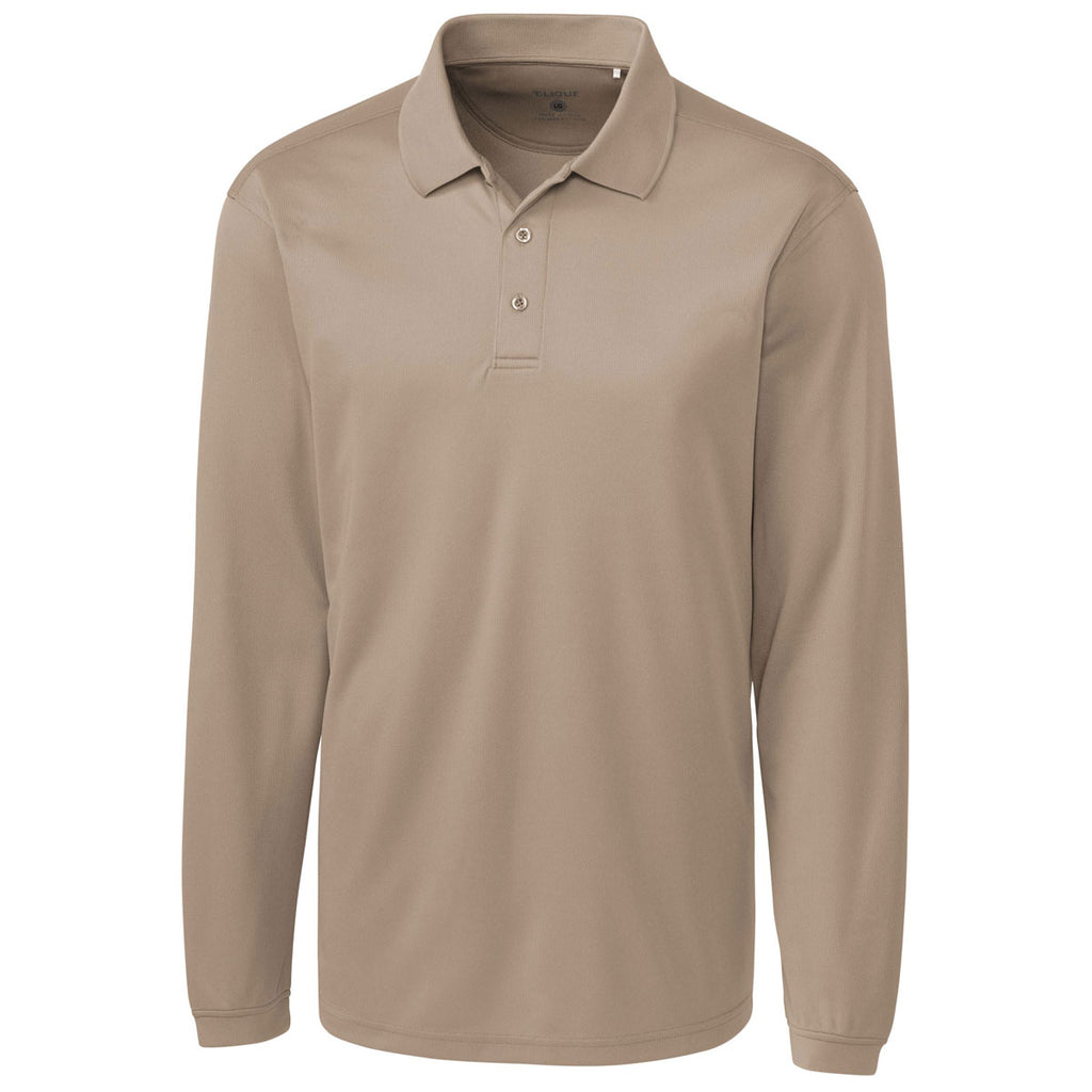 Raise the company apparel bar higher by making the versatile Clique Men's Light Beige Long Sleeve Ice Pique Polo the new employee uniform. The long sleeve shirt brings short sleeve polo panache, while delivering functionality by offering you the ultimate apparel for layering. Wear the long sleeve polo over a Clique tee or as the middle layer of a cold weather fashion ensemble. Moisture wicking fabric ensures the skin remains dry throughout the day. Tear away the label and add a custom logo on the embroidery area. Forward shoulders present a dignified look that will attract the attention of your professional peers.Corresponding Women's Style: Clique Women's Light Beige Long Sleeve Ice Pique Polo