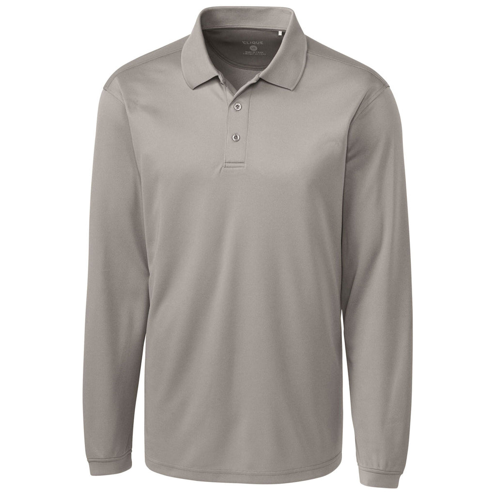 Clique Men's Silver Long Sleeve Ice Pique Polo