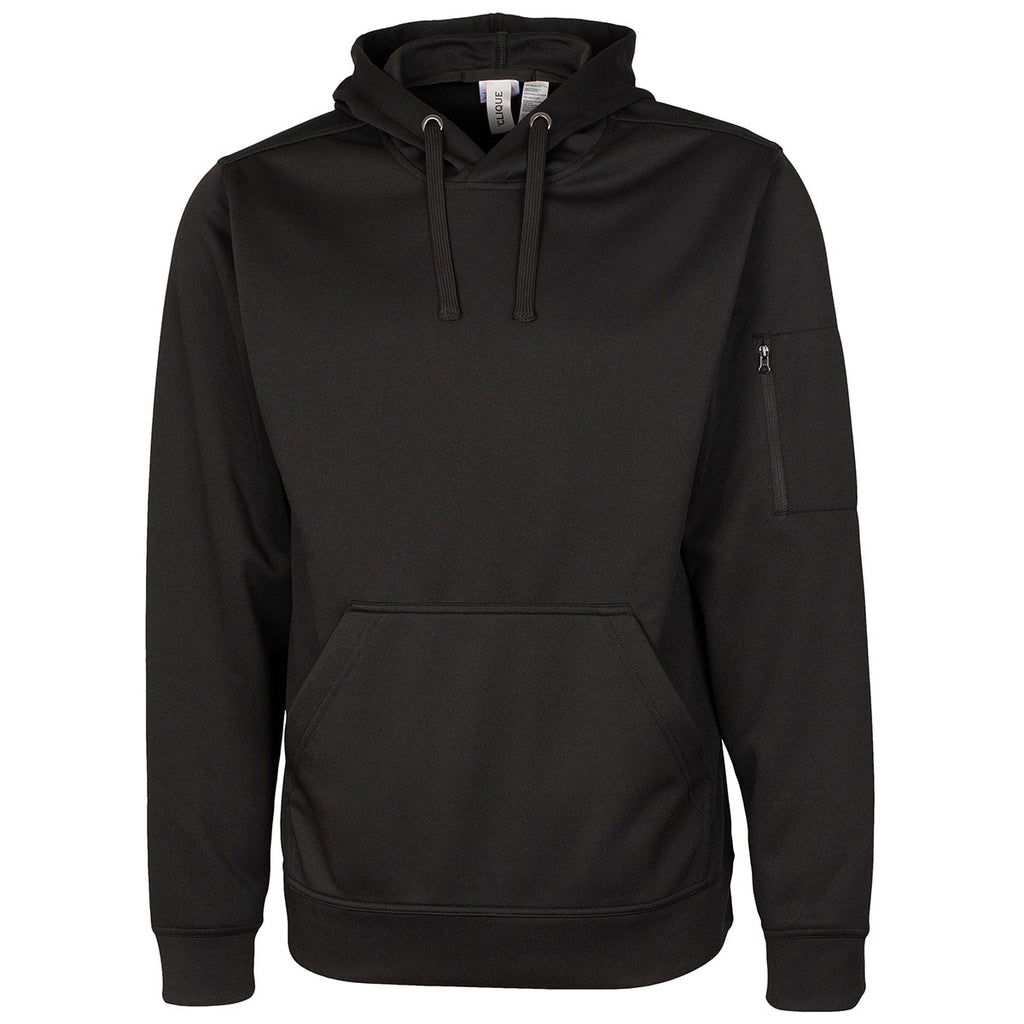 The Clique Men's Black Lift Performance Hoodie Sweatshirtoffers a stylish look and extreme comfort for the wearer to enjoy. With a company logo added in screen print, you can personalize this sweatshirt to show off your company name to the masses. Hand this corporate apparel item out at golf events or recruiting events or you can give it to your loyal employees as a gift. Some of the tempting features of this hoodie sweatshirt include a variety of classic colors to choose from, 100% polyester interlock fabric, attached hood with drawstrings, kangaroo pocket with interior cell phone pocket, left sleeve zip pocket, and self-fabric banded cuffs and hem.Highlights