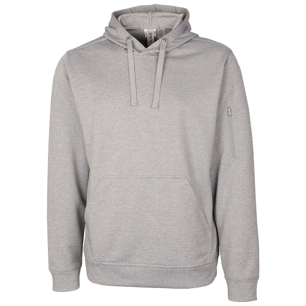 The Clique Men's Grey Melange Lift Performance Hoodie Sweatshirtoffers a stylish look and extreme comfort for the wearer to enjoy. With a company logo added in screen print, you can personalize this sweatshirt to show off your company name to the masses. Hand this corporate apparel item out at golf events or recruiting events or you can give it to your loyal employees as a gift. Some of the tempting features of this hoodie sweatshirt include a variety of classic colors to choose from, 100% polyester interlock fabric, attached hood with drawstrings, kangaroo pocket with interior cell phone pocket, left sleeve zip pocket, and self-fabric banded cuffs and hem.Highlights