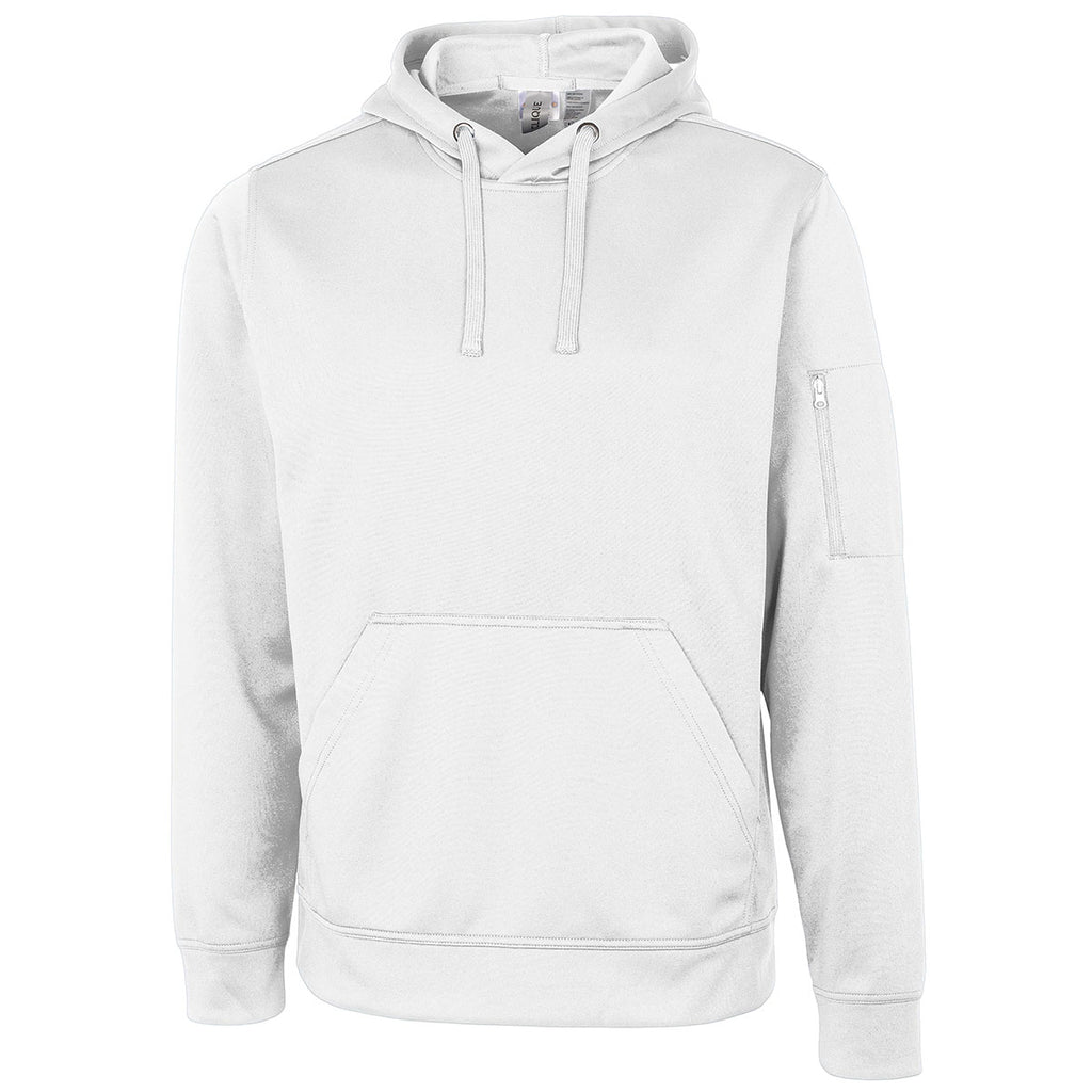 The Clique Men's White Lift Performance Hoodie Sweatshirt offers a stylish look and extreme comfort for the wearer to enjoy. With a company logo added in screen print, you can personalize this sweatshirt to show off your company name to the masses. Hand this corporate apparel item out at golf events or recruiting events or you can give it to your loyal employees as a gift. Some of the tempting features of this hoodie sweatshirt include a variety of classic colors to choose from, 100% polyester interlock fabric, attached hood with drawstrings, kangaroo pocket with interior cell phone pocket, left sleeve zip pocket, and self-fabric banded cuffs and hem.Highlights