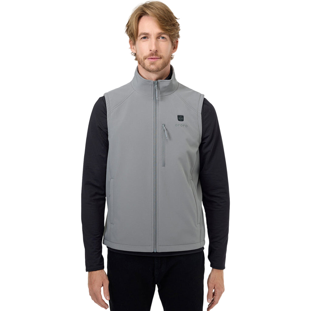 Ororo Men's 04-Grey Heated Softshell Vest with a custom logo is the ultimate in activewear during colder weather. This softshell vest can be worn as a top or inner layer while hiking, camping, hunting, or wherever you need. The four heated zones work up to 8 hours and heat in seconds to keep you comfortable.