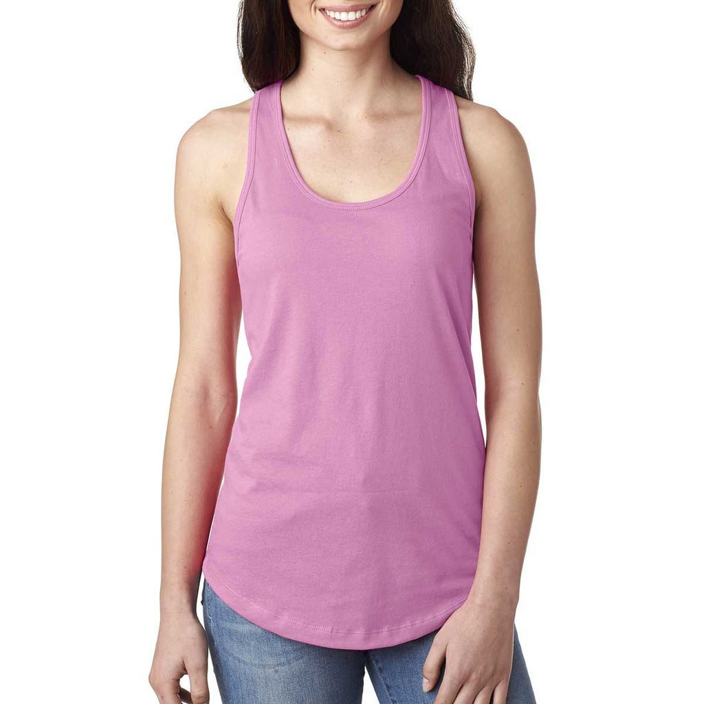 You thought you knew everything there was to know about WoMen's tanks. Then you met the Next Level Women's Lilac Ideal Racerback Tank and, well, now you see there was much more to know. Allow us to fill in the blanks: comfortable, lightweight fabric gives the tank a casual feel. The self-fabric detailing makes for sartorially smart layering. And with enough strength and durability to put up with a regular fight in the wash, you'd be surprised at just how long this tank can last. Almost like an actual tank. Simply add your custom logo to up your unique brand's status.Setup includes free 2-color logo on 1 location. If you need more colors added to your logo, or another imprint location, please inquire with a Merchologist.