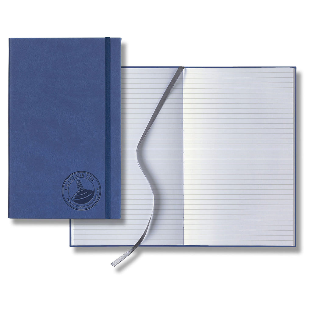 Make a great impression at upcoming promotional giveaway by accenting Castelli Royal Blue Tucson Banded Medium Journal with your brand's logo or name. An ideal gift for business people and executives, this journal will quickly become their favorite go-to notebook! Features include 192 lined white pages with grey lines and a silver ribbon marker. It flaunts a cover with smooth soft texture that looks like genuine leather. Size: 5 1/4" x 8 3/8". Have your company's logo debossed to raise maximum brand awareness.