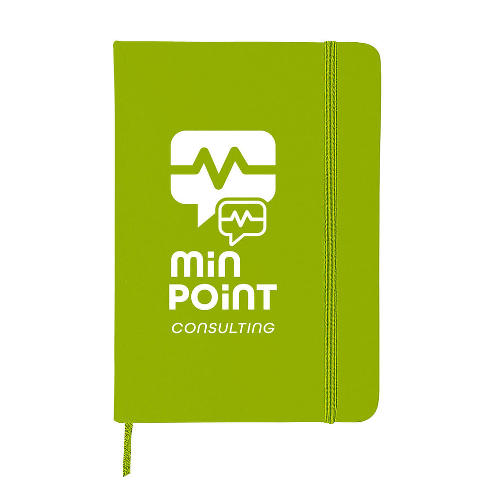 Your company's custom logo will make a statement when it's added to the front of this Primeline Lime Green Comfort Touch Bound Journal - 5" x 7". Available in a vibrant array of color options, this customizable notebook includes 80 lined sheets of paper as well as a ribbon bookmark to keep your place.