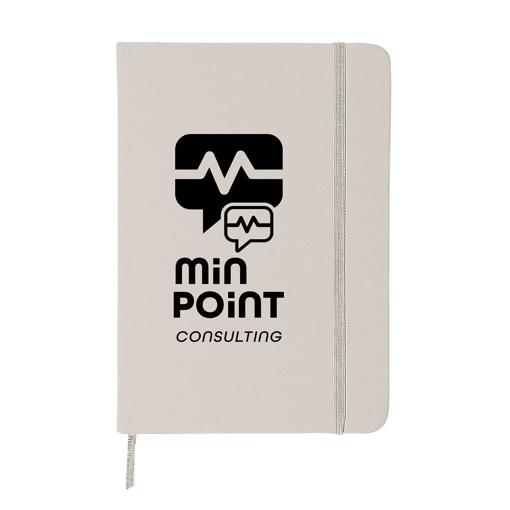 Your company's custom logo will make a statement when it's added to the front of this Primeline White Comfort Touch Bound Journal - 5" x 7". Available in a vibrant array of color options, this customizable notebook includes 80 lined sheets of paper as well as a ribbon bookmark to keep your place.