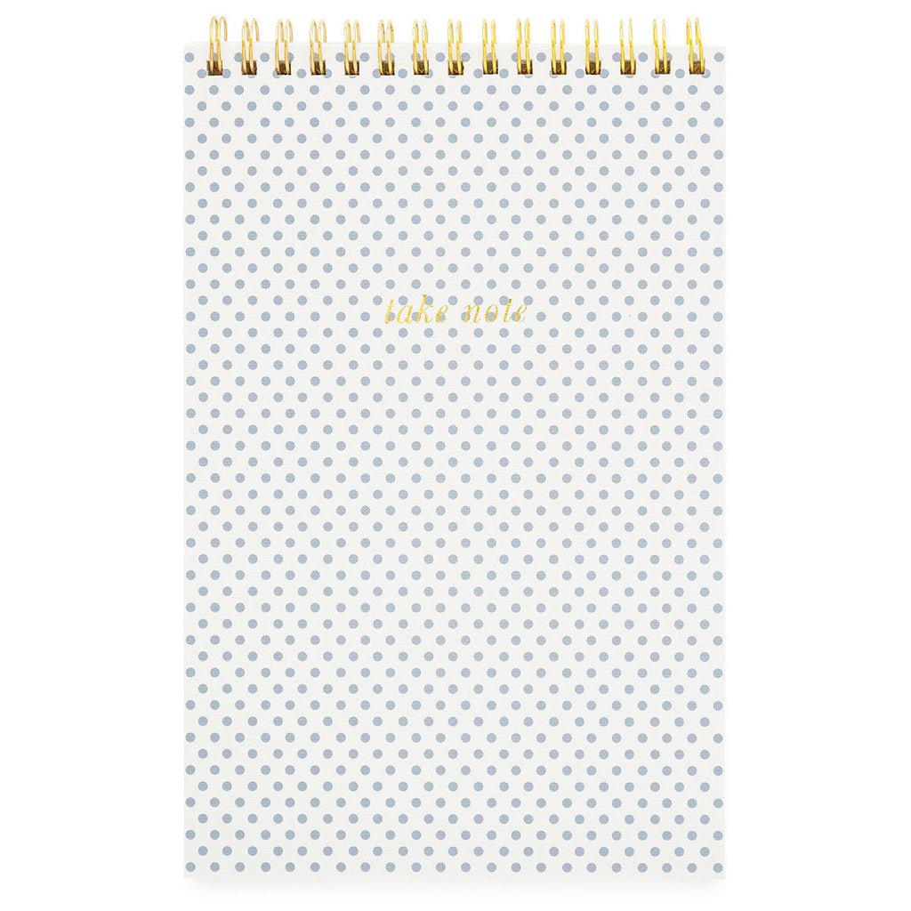 The Sugar Paper Top Spiral Notebook, Blue Polka Dot is sleek, stylish, and incredibly easy to use. Gold spiral binding at the top makes it easy to pull out at a moment's notice. Your company's custom logo or design will look incredible when it's added to this elegant office accessory.The minimum is 6 units.