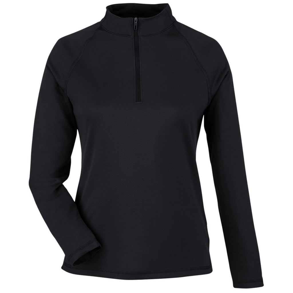 North End Women's Black Revive Coolcore Quarter Zip with corporate embroidery will turn heads. This sleek, professional quarter zip is made from recycled materials to be eco-friendly and sustainable. Created with moisture-wicking, thermal regulation, and UV protection, this quarter-zip is great for the commute, the office, and heading home.