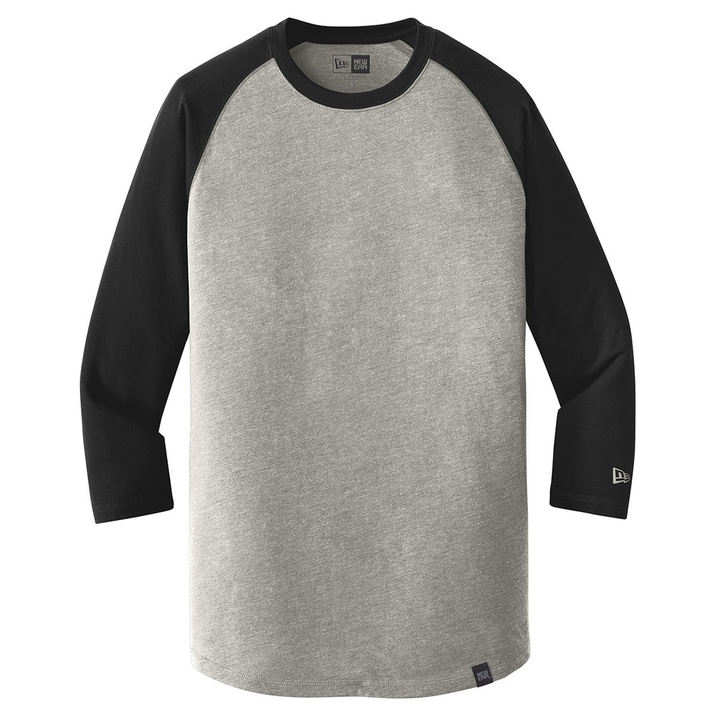 For a major league look, put on the rugged New Era Men's Black/Rainstorm Grey Heather Heritage Blend 3/4 Sleeve Baseball Raglan Tee. When you slide safe into second base, the 40% polyester fabric resists rips and tears to give you several league seasons of high performance use. Back and shoulder yoke color blocking delivers a visually attractive appearance. Raglan sleeves and a shoulder darting shape help increase mobility for both arms. The extra mobility comes in handy when you need to let it rip at the plate. Add a custom logo on the large imprint area for expanding your company's presence at civic and professional networking events.