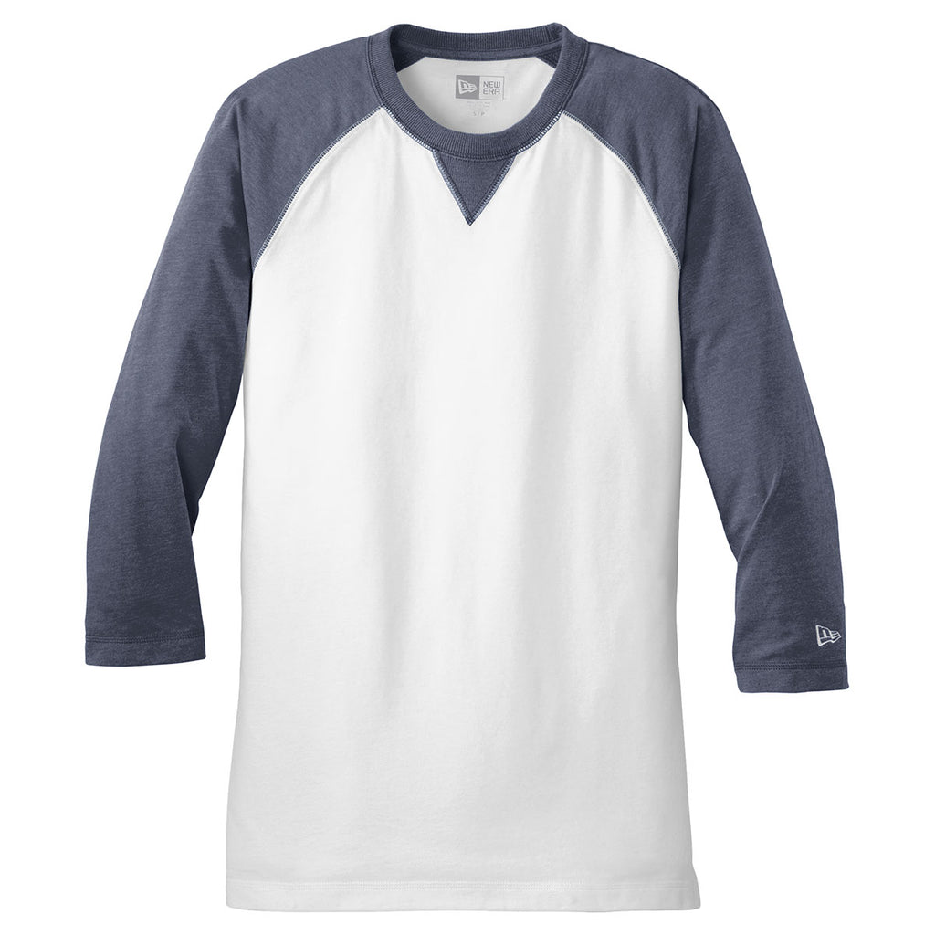 With a logo attached to the large imprint area, the New Era Men's True Navy Heather/White Sueded Cotton 3/4-Sleeve Baseball Raglan Tee delivers a powerful marketing statement for everyone at the corporate event or outing. A custom logo helps your company connect with customer prospects at company golf tournaments and during extended business travel. Suede ring spun cotton will attract the attention of the professionals you meet at business conferences. Rugged polyester endures the worst pounding inflicted by poor weather conditions. Your team will appreciate getting a t-shirt that is both comfortable and stylish to wear after hours.